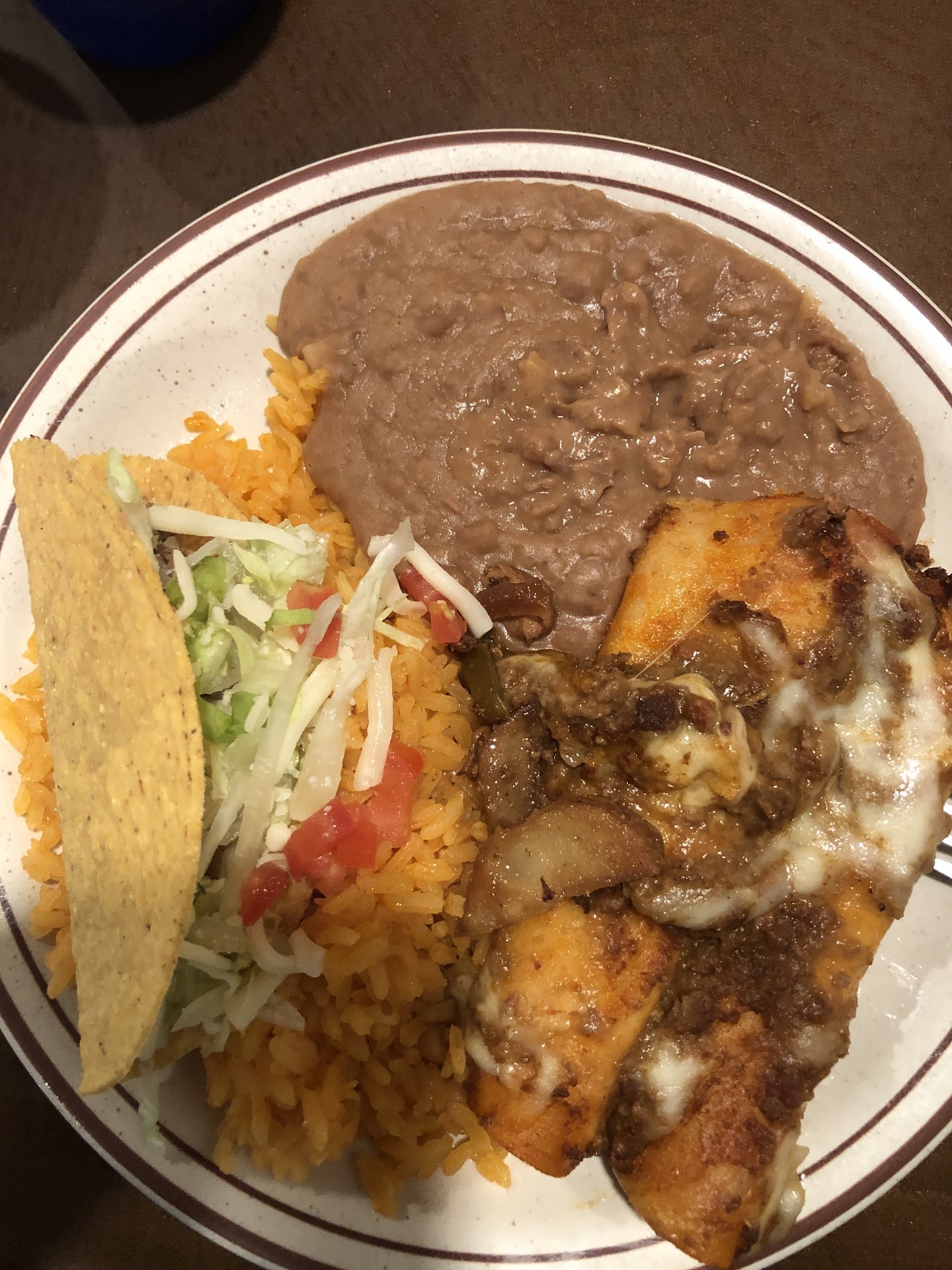 Read moreWe were visiting family from out of town and they said that this was a good place to eat. When we were seated the booth was dirty and had beans and other food on it. My brother found a very long hair in his salsa as he was eating it and lost his appetite. He wanted to cancel our entire order and leave, but I insisted that we stay. We asked for them to cancel his order but unfortunately they had already made the food. My chilie relleno was very greasy and was not good. My husband had the fajitas and the shrimp, steak, and chicken were over cooked. The waitress was really good and tried to rectify the situation by take his meal off of the ticket. At the end of the meal the waitress said that the manager would not allow her to comp his meal, that he didn't eat, but wanted to give us free sopapias instead. We didn't ask for our meal to be competed just the one order that my brother didn't want to eat because he had lost his appetite. We declined the sopapias and left. My brother will not...