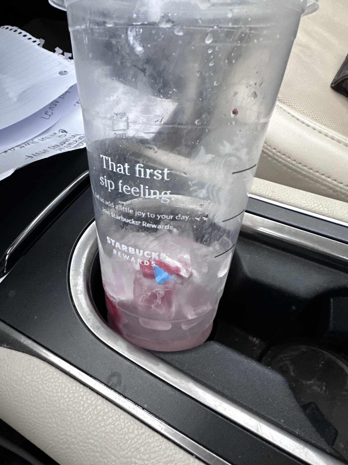 I didn't notice the blue plastic chunks in my drink until it was too late. Now I'm just paranoid that I was eating blue plastic & im 8 months pregnant. Also service was slow for me being the only one in line and waiting