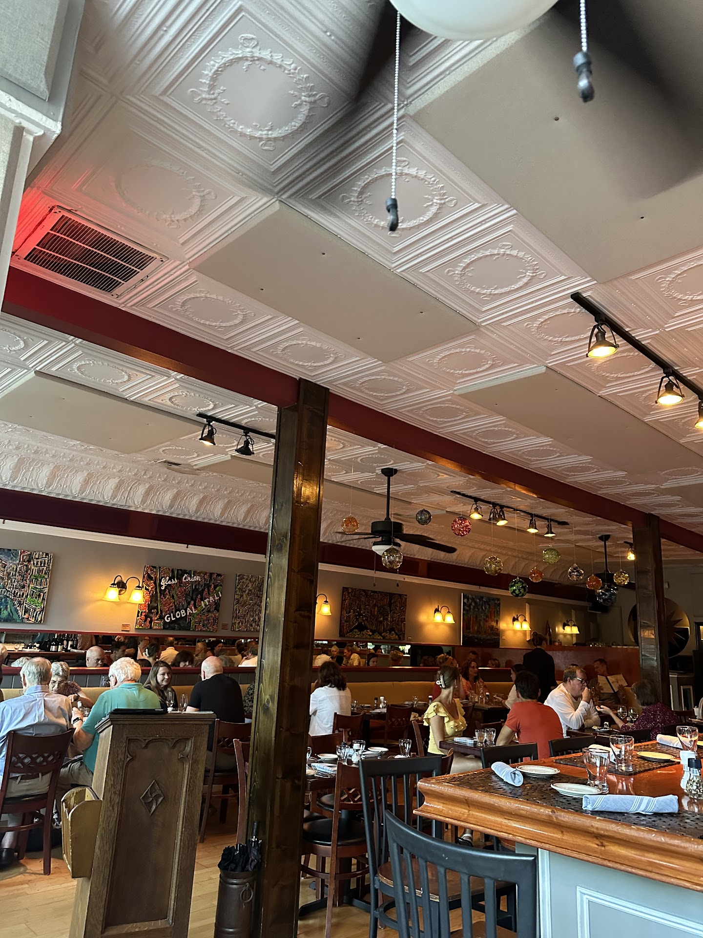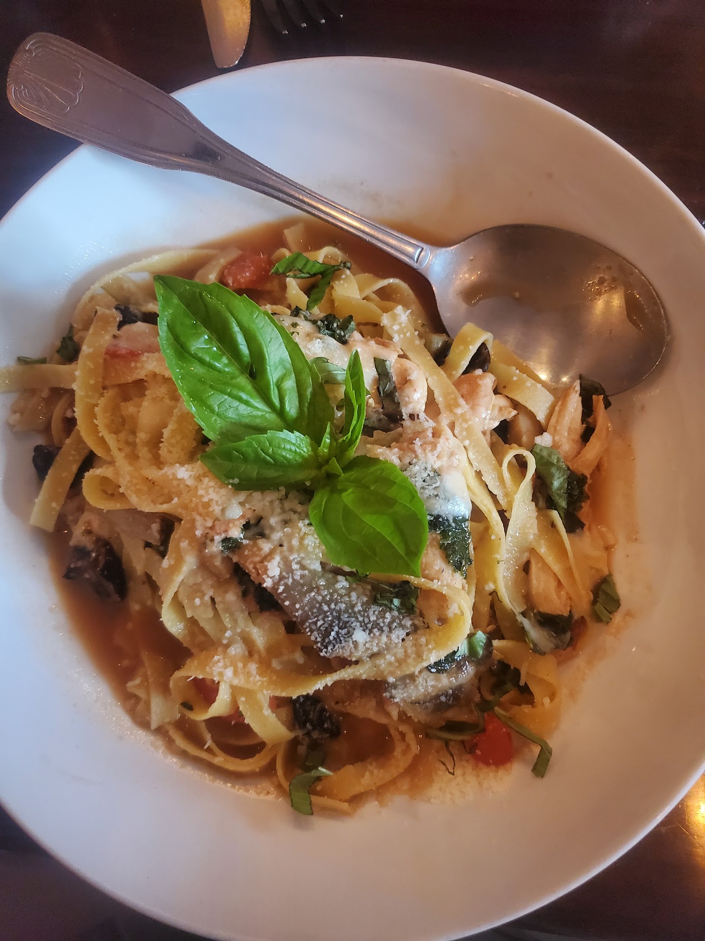I ordered the Elderberry Fizz, The House-Made Blue Cheese Dressing Salad, and the House made Fettuccini w/ Organic Roasted Chicken. My pasta was mediocre. I did very much enjoy the artichoke hearts in it though. I just thought it was lacking in some way. I thought the portioning was appreciable. I loved the rolls as well. 3/5 ~ food