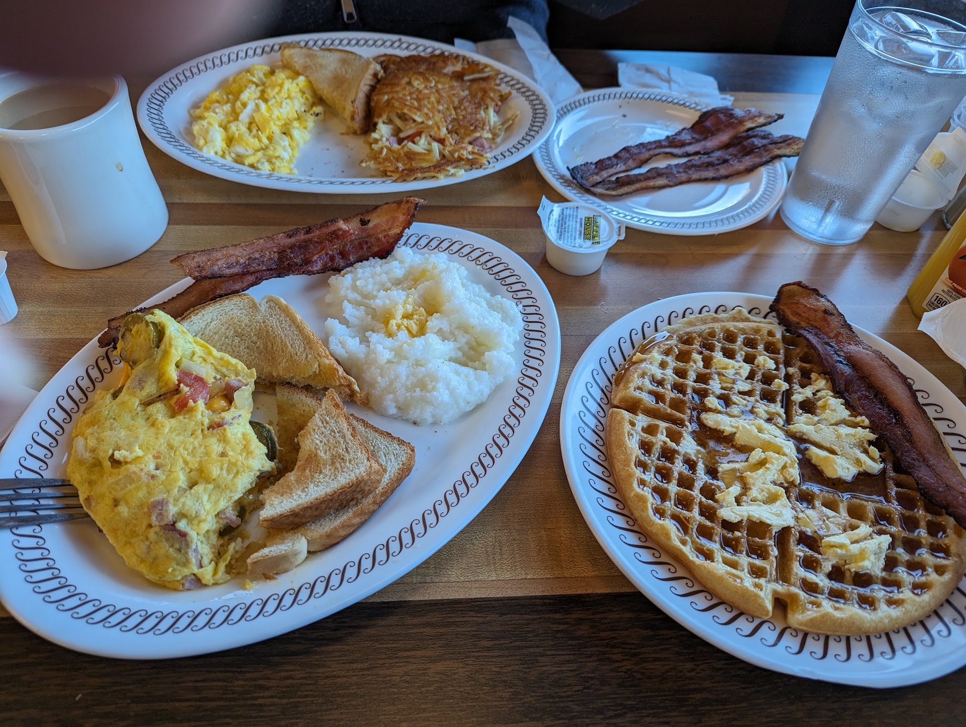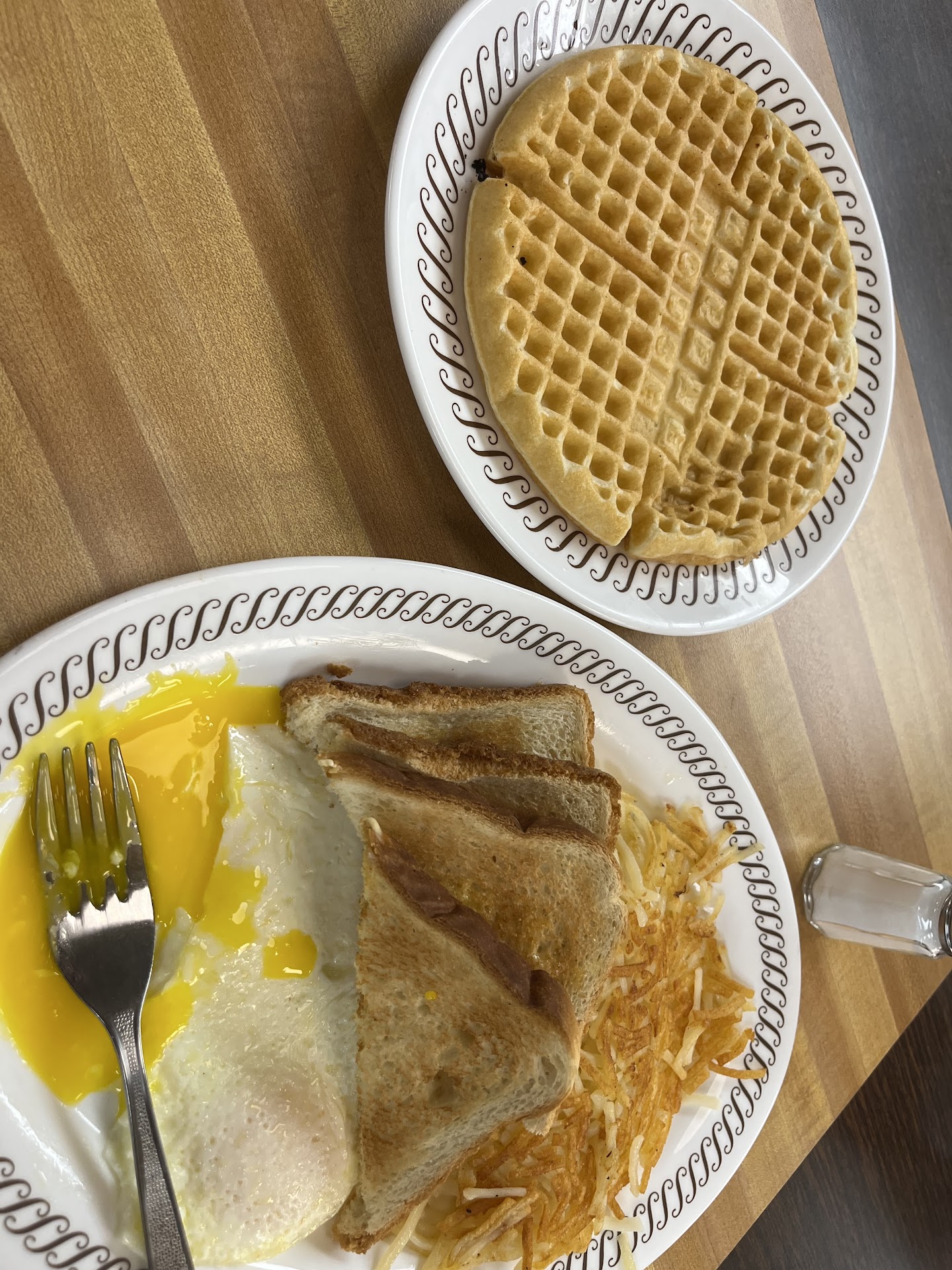 Probably the worst experience at a Waffle House Iāve had. Went 10/5/19 at around 8PM. Waitress greets us, but failed to provide us with silverware. She took our order, and put it in. Shyenne was her name, and she did ask us about our orders, like if we wanted toast or not and what I wanted on my chicken sandwich, which was nice. I get my chicken sandwich with hash browns, exactly how I asked. My friend also gets ham and cheese omelet, everything as it should be. When she asked for syrup, which I was suppose to receive a waffle, the man behind the counter gives her sass, asking if someone ordered a waffle. I finish my food, my waffle no where to be found. I then hear a employee ask another employee if someone ordered a waffle, in which one says it was our table. The woman then proceeds to say,ā Oh my, this waffle is burnt!ā Then she delivers it to me, knowing it was burnt. Our waitress, Shyenne, comes over and says,ā Oh my, do you want another?ā. Iām a paying customer, so of course I say yes. I should have never been served a waffle that was burnt and obviously forgotten. I was also suppose to have a peach waffle, which was forgot on both occasions until I was half way through the 2nd waffle. Shyenne was kind enough to offer me a peach waffle to go but I told her it was fine, and she did cross it off my ticket. Not sure the name of the female who handed me a burnt waffle. I donāt normally complain, but if you knowingly hand me something that you know if wrong, then I think it calls for...