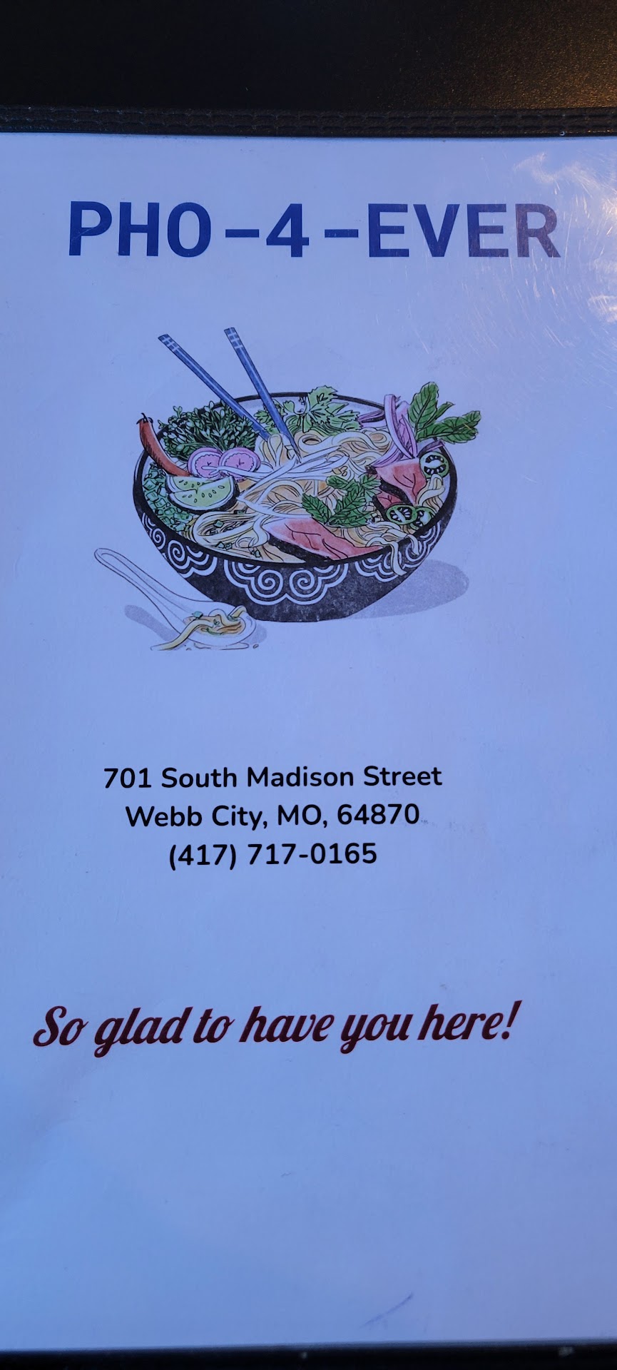Dang, I was so excited to have my soup, I forgot to take pictures of it. My wife got the Vietnamese Ice Coffee and loved it! Our waitress was so sweet and helped pour the coffee. All of the staff was very friendly! This place is fairly new and our order did take awhile, but I understand they are still working out all the kinks. I loved the Pho Tai Nam (Rare Steak and Flank Pho) and there is a sweetness to the broth. Ingredients were fresh and I decided to order 2 eggrolls after my soup, and they were made fresh and piping hot! A must try in the Joplin/Webb City area. I will definitely go back.