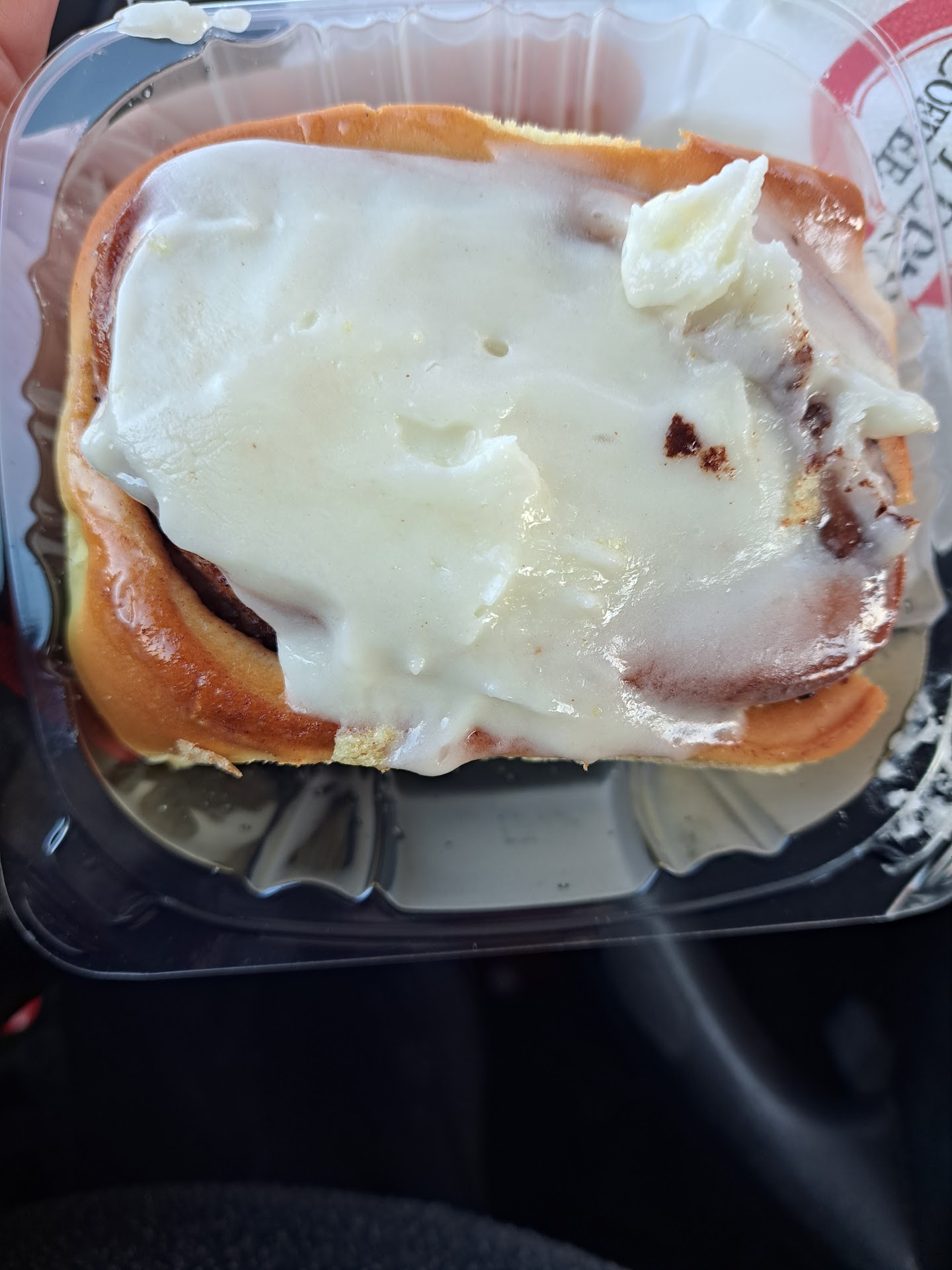 Read moreLove this place!!!!!! BUT you cannot modify anything...my kids wanted one of there breakfast sandwiches she wanted the mild sausage not spicy...she is 3 and it's NOT allowed....she doesn't like maple says it's yucky even at home. Can't add extra icing to a cinnamon roll. NOT really kid friendly when it comes to the menu since you can't modify. This is an edit! Are your breakfast burritos supposed to look mushy? Also why so little icing, for...