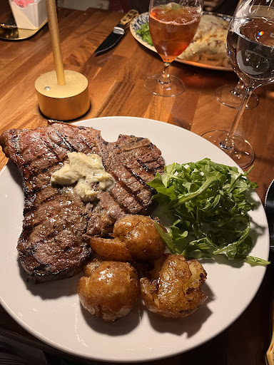 As for the dining experience, one couple received a bottle of wine immediately, but after 10 minutes of waiting, the other had to ask for the bottle. Again, it was a slow night. Mayfair salad was wilty, but House on the Hill salad was considered a highlight. Mussells alla crema was gritty with little meat, and a cold/watery crema. I thought of getting the hanger steak, but figured since it's an upscale restaurant, I'd spend the extra $20 and get the rib eye for a great steak. My error. I ordered it MR, but it arrived inconsistently cooked (from MR to WD). It was pre-cut, which only cools and dries out the meat. It's not a porterhouse that is shared, but a steak for one. Pre-cut was unnecessary and only made for a worse experience. Polenta was ok, but all enjoyed the pistachio pesto. Halibut and Maiale (pork) were both considered good, but again, you expect better than good.
