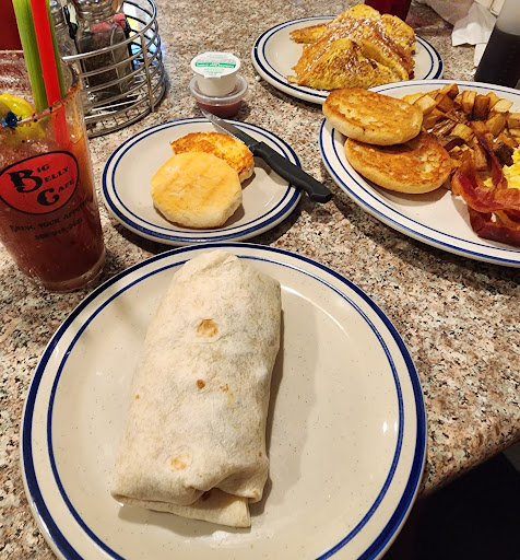 Then a FORTY FIVE MINUTE WAIT to get food. No one checked in even once in the meantime. No coffee refresh, no water refill, etc. The cherry on top is a customer came in at least twenty minutes after us, was greeted and referred to as 'hey neighbor" and got his food at least ten minutes before us. Just atrocious. Don't get me started on the $12 meatlovers burrito. It was delicious but tiny and came with nothing such as home fries. Big belly my butt!!