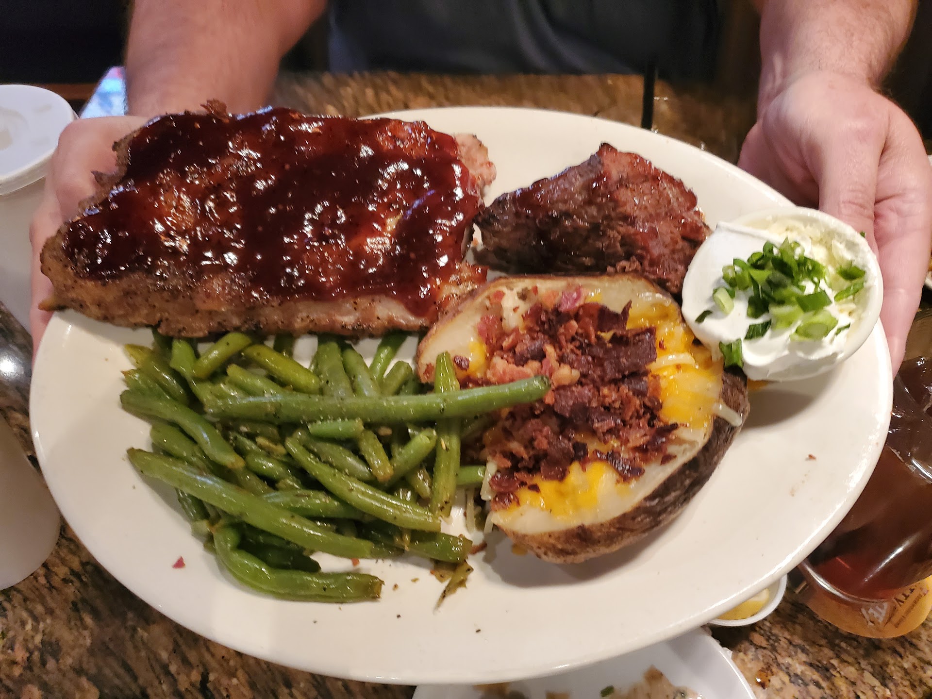Tri-tip Steak & Ribs combo = flavor on the steak was good, but wasn't terribly tender. This cut would make a good slow cooker pot roast once shredded. Ah the Ribs; good flavor but a bit too tough also. Thought I got a deal on the combo because I can't believe these ribs go for $28 for a full slab.
