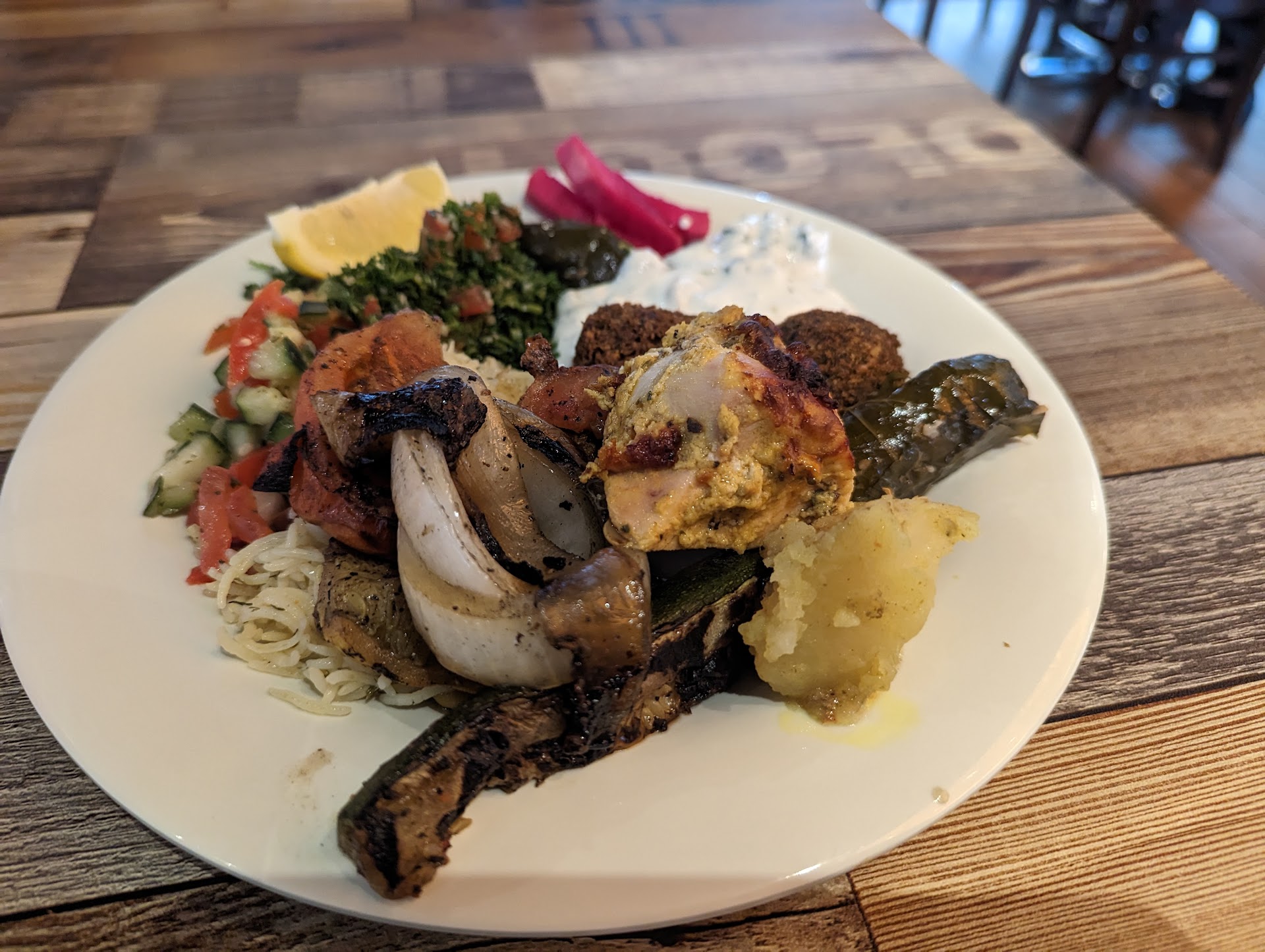 Hands down the best buffet I've been to. Everything is very clean, and the food tastes very fresh. Staff comes by to pick up dirty plates, but for the most part they leave you be, which is an introvert's dream. Walk in, put on gloves, grab a plate, dish yourself, eat, repeat if you're still hungry. Everyone is super nice at checkout, they even had little mini go cups of coffee at checkout one time. Which brings me to the next point, it's a little different every time you go in, which I think helps them keep the food so fresh. Sometimes they have some things, sometimes they don't, certain things are staples and they always have them but they will be just a little bit different, one time the semolina coconut cakes were sprinkled with more coconut, another time they were sprinkled with pistachios. One time we came in they had curry chicken that was really yummy, the next time they didn't so I had some kabob chicken which was also quite good. My personal favorites are the veggie grape leaves, the tabouli and fatoush salads, the cucumber minto yogurt dips, the falafel is AMAZING, the mixed grilled vegetables, the pita bread, and all the meat dishes are good too, but the veggies are a staple for me. The rose water sends me to another dimension, it tastes like a flower garden, I live for it. The Namoura is my all time favorite dessert, super delish, but the baklava and the rice pudding are also super good. Because it's different every time, some days the rice pudding will be better than others, or some days the rose water is particularly rosey. But one thing you can count on is the food is always good. Suffice to say, I highly recommend this place if you want some really yummy and healthy...