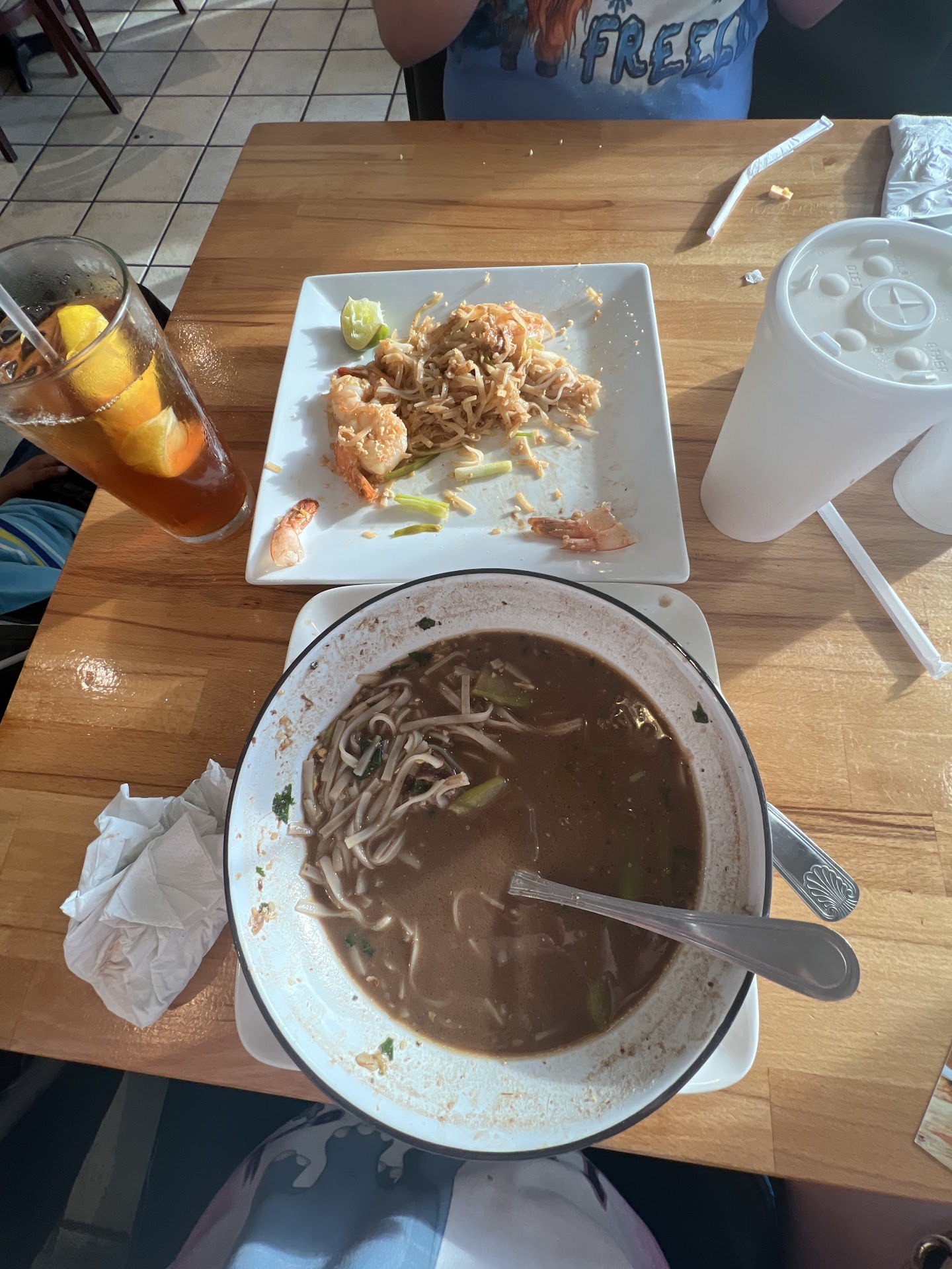 I ordered papaya salad, tom yum soup, pad Thai, pad see ew, boat noodles and mango sticky rice for dessert. I love the tom yum soup: tangy, sour but sweet after taste. The papaya salad was very refreshing and crunchy. My mom love her pad Thai with the crunchy from the peanut and bean sprout. My favorite is the pad see ew because it has a smokey flavor. I just wish they put lil bit less season cuz it got salty when i finished it. Iâve only seen boat noodles on social media but never tried it, so of course i gotta order it when i saw it on the menu. Itâs good, has a similar flavor to pho but the broth is thicker and less herby compare to pho. Idk itâs interesting lol, but itâs good. Canât complete the meal without dessert and omg, the mango sticky rice was so good! Sticky rice was really soft and very coconuty. Combine with the fresh mango and young coconut cream, chef kiss!!! Me and my family were happy with our meal and definitely going back! Great Thai place in...