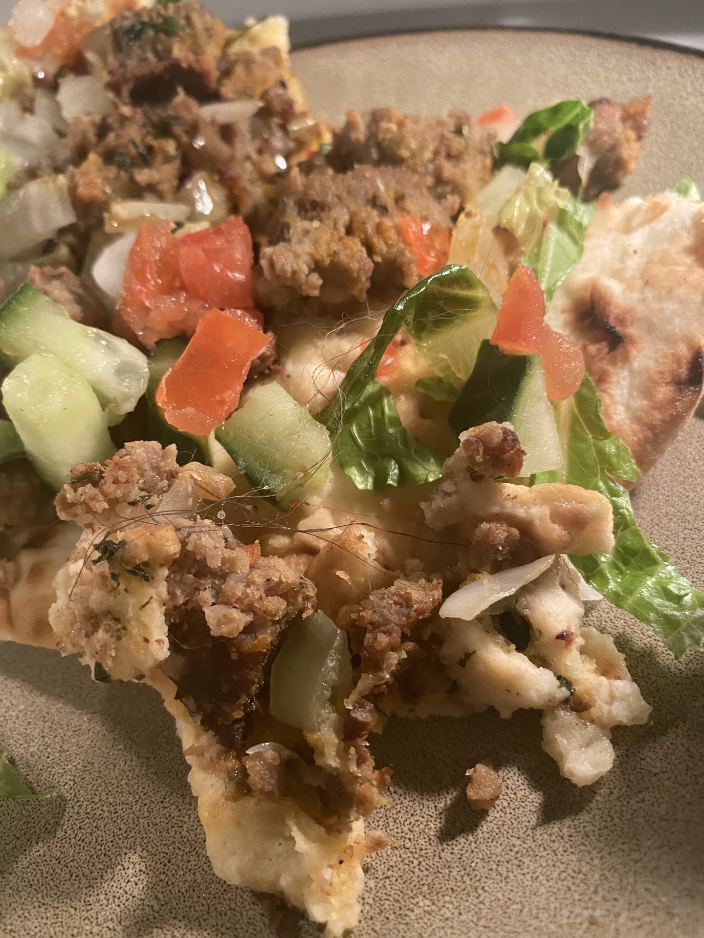 Read moreI have been eating at this location every few weeks since moving to the area in June. The food has been pretty tasty and I really enjoy the fries. Today I ordered a lamb gyro at around 6:15. After taking several bites, I became extremely alarmed to the sensation of a mouthful of hair. Not just one strand. MANY. I have thick hair with tight curls, so I know undoubtedly that this is not mine. Im revolted. As I pick through the food Im still finding thin strands of hair. In this image (I apologize for how gross this is) you can see the bite of food I spit out and all of the hair that was in it. You can even see a drop of saliva on one of the hairs from when it was in my mouth. And then the length of the hair that I pulled out of my mouth after the bite. There was so much hair in my mouth that I had to pull it out in strings. I am absolutely disgusted, fighting the urge to throw up the few bites I swallowed, and there is no way in hell I can ever...