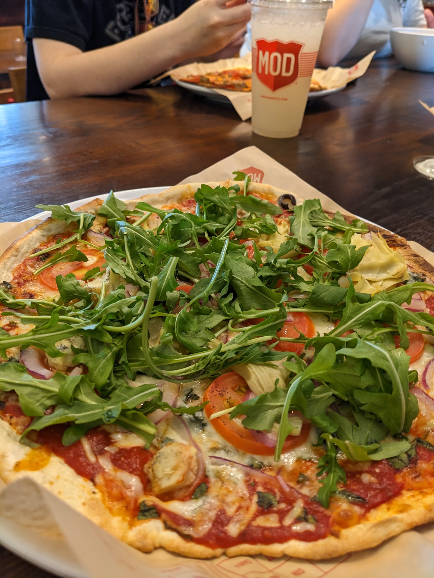 Today was my seventh time visiting this particular MOD location and let me say that the service just seems to get better w/ every visit! The environment is clean, the energy is positive, and the service is outstanding. As for the food, I love that you can build your own pizza and/or salad or choose from a variety of options. I also really love how many topping options available and the fact that adding them all is still just one price! The dough is so yummy and the toppings are super fresh and itās just cool to be able to watch your food the whole time (Iām a little weird).