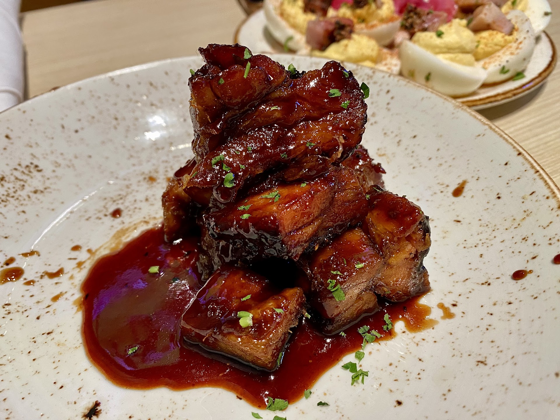 Read moreLooked for a place to grab a late lunch, and we just hit the jackpot!!! Cool place with a nice decor, and an easy going, fun vibe. Had a great server, that gave us recommendations and was fun to talk to. Started with some pork belly bits. One of the best appetizer dishes I ever had! Pork belly cubes, tender, and cooked to perfection, with a cherry cola glaze, that made it sweet but not too sweet. They were delicious!! Don't miss on them. Next we had a brisket-ribs combo. The brisket was great. A nice smoke ring, tender, and full of flavor, and definitely not dry. The ribs were also cooked perfectly. Falling of the bone soft, with a lot of flavor. It was a big plate with a generous portion of meat. We also got a ribeye steak. Cooked to a perfect medium-rare, seasoned with only salt and pepper, like a good piece of meat should. An amazing steaks!! We got 4 sides with all those dishes, and they were all good, but the corn and the glazed carrots were my favorite. Definitely get them! Since everything was great, and even though we were full, we had to get a dessert, so we got the mudslide. Great choice! Good chocolate cake with great chocolate mousse, with some marshmallow cream on it. Not as sweet as it sounds, but still a good sweet to end a perfect meal. This is definitely a place to come to, and than,...