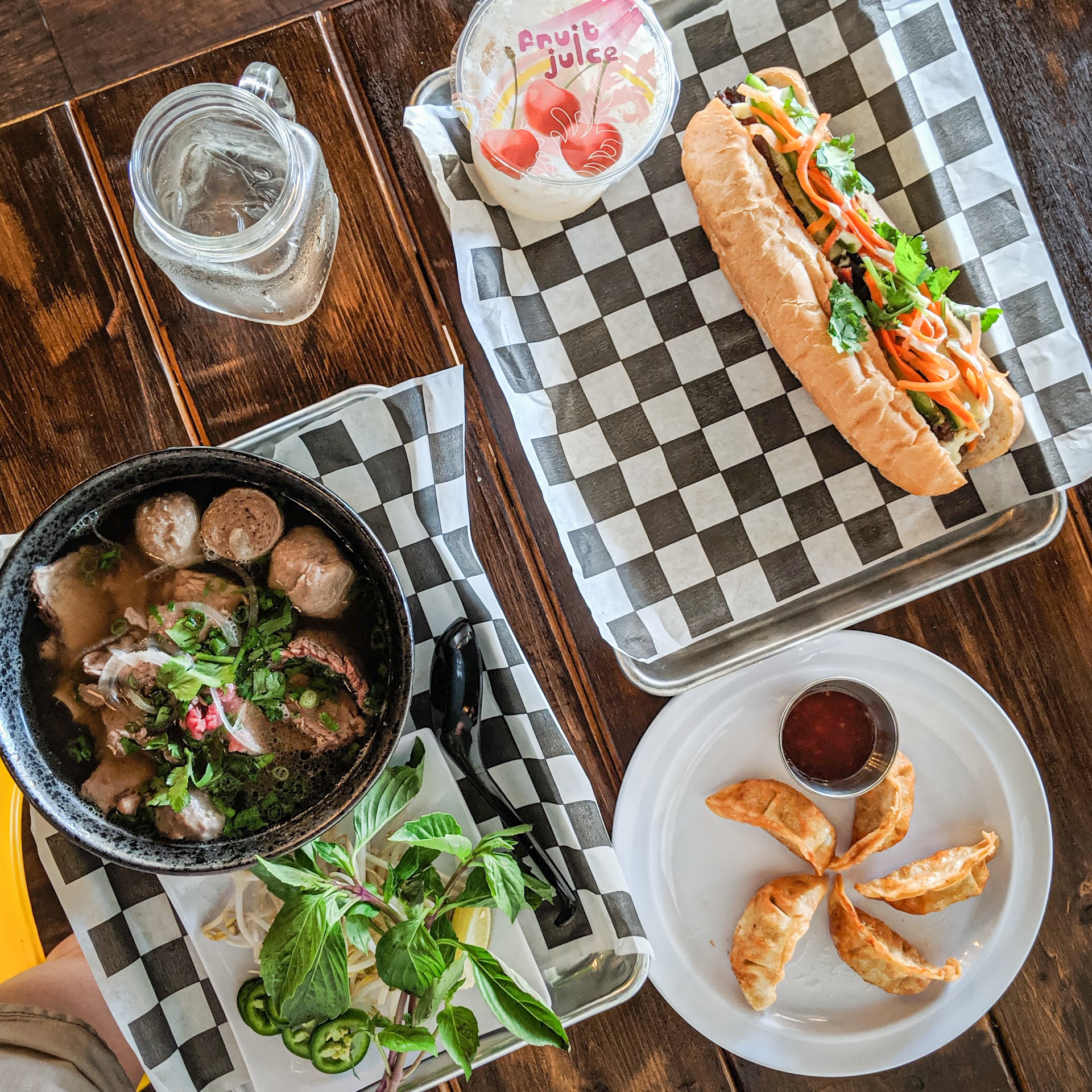 Food: We ordered the dumplings, beef pho, banh mi, and eggrolls. Very good beef pho. Broth was very flavorful and the meats great quality. I highly suggest the eggrolls. The skin is so unique, crunchy, and flakey. The inside is pork and shrimp and was very flavorful. The dumplings were good, but nothing super special in my opinion. The banh mi had good flavor, but the bread could use some improvement, but that's just preference.