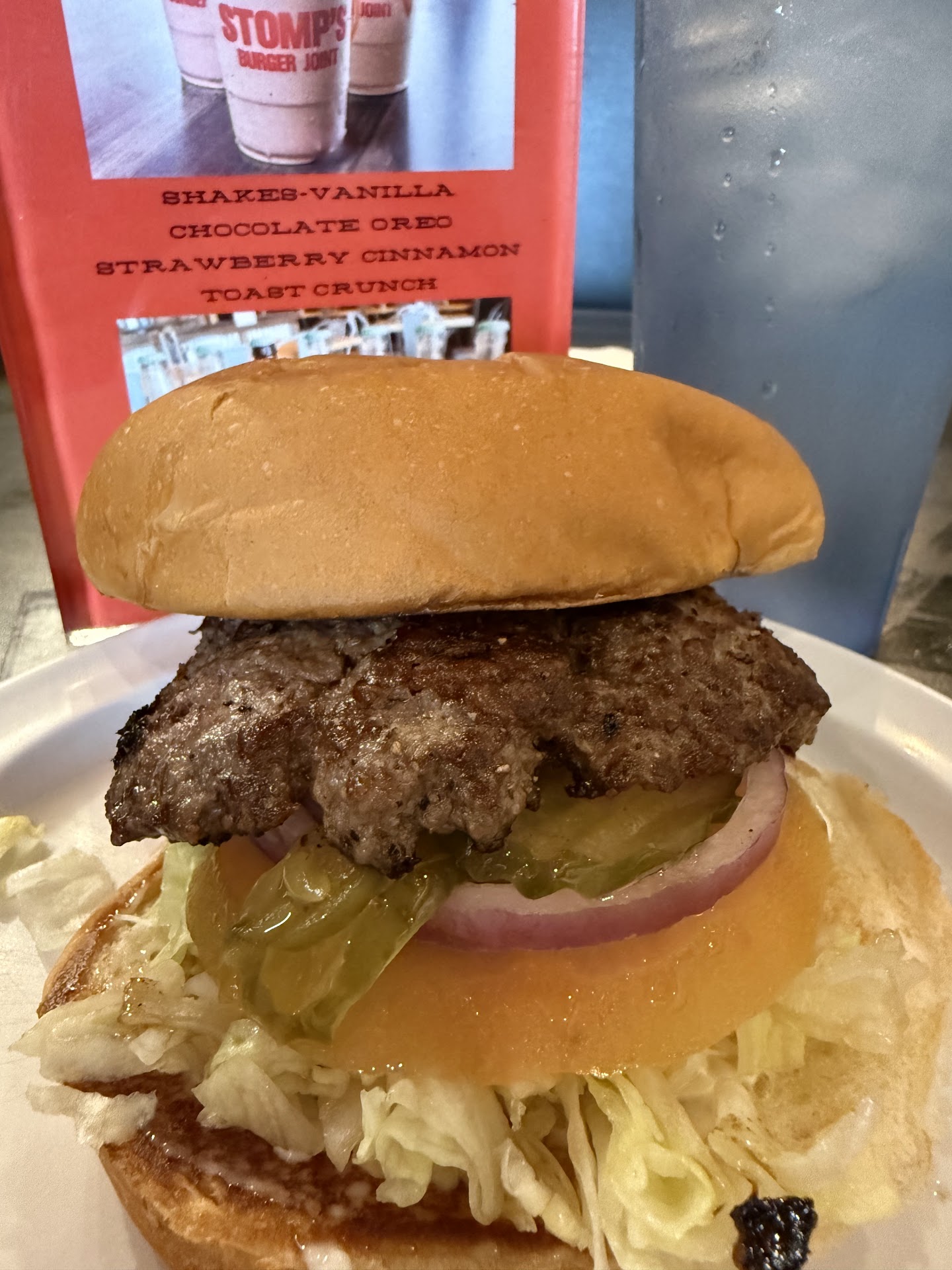 Read moreWe eat there so often they've named a salad and a combo after my husband! 😋 We discovered Stomps in the early days of the C-vid lockdown restrictions lifting. Thinking businesses would have the same hours as before, we pulled into the parking lot around 7:45 pm. We double checked the sign and saw it was about 15 minutes before they were closing. So, we headed back towards the car to go elsewhere. (We have both worked in service industry and definitely did not want to be "that customer" that rolls in just before closing.) To our shock and amazement, one of the waitresses actually came out to the parking lot and invited us in. We protested, saying we did not want to hold them up on their closing. She said, "we appreciate that so much and that is why I insist on serving you." Holy cow! I didn't think there was customer service like this outside of that Beauty & the Beast scene! But, you'll find it here. We have been regulars ever since, going a few times a week for our favorite dinner salads and burger combo. Unlike most restaurants in the post lockdown era, the tables, the silverware, the cups, everything is CLEAN as you would expect it to be. The staff are professional and courteous as well. Whether you live close by or are just visiting, you won't be disappointed here. They serve your standard Americana fare with a good kids menu and a lot of yummy sides to choose from. And, if it's been one of those days for you, they also have beer and other adult...