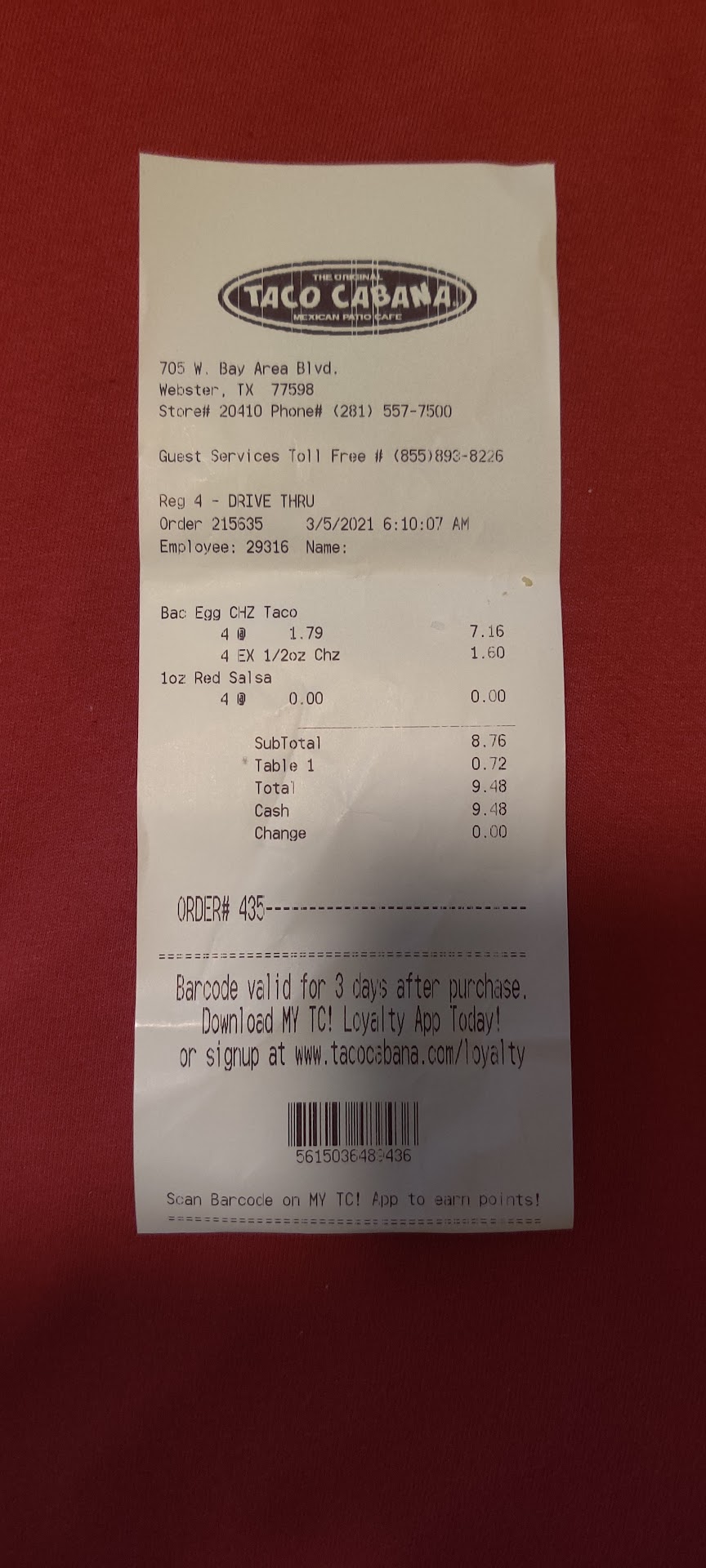 Cashier was obviously new but I can let some things go , BUT..... First , I ordered the beef fajita plate with an extra beef fajita taco. He had to ask how to add the extra taco. No biggie ... He asks me what kind of taco and I say "an extra beef fajita taco"... He repeated it back. What I got was a ground beef taco. It wasn't very good either. The shredded lettuce was wilted . The meat has an unusual flavor , more like from a Mexican pulled pork type dish. I don't think the flavor fits the beef. 🤷♂️ The fajita tacos used to be my favorite . This time around , I couldn't understand why. The meat was tough and chewy. Kind of bland , with some burnt spots. And dry ..... ☹️ Not at all what I remember. I was served on a freshly washed tray , still dripping wet from the washer. The water soaked thru the paper tray liner and my box of chips before I could sit down. I went to get tea and it was dripping all over the counter top. They knew about it because they put down a few paper towels.... but it was allowed to continue dripping. Oh yeah , back to the cashier. As I'm waiting for my food , I see him start scratching his head/hair as he's walking into the back cooking area. He has gloves on mind you , but it's the same gloves he had on when he took my order .... Thankfully he doesn't handle food because I would have been pretty upset. 🤮🤮 I'll never go back to this location. Too many negatives in one trip crosses it off the list of...