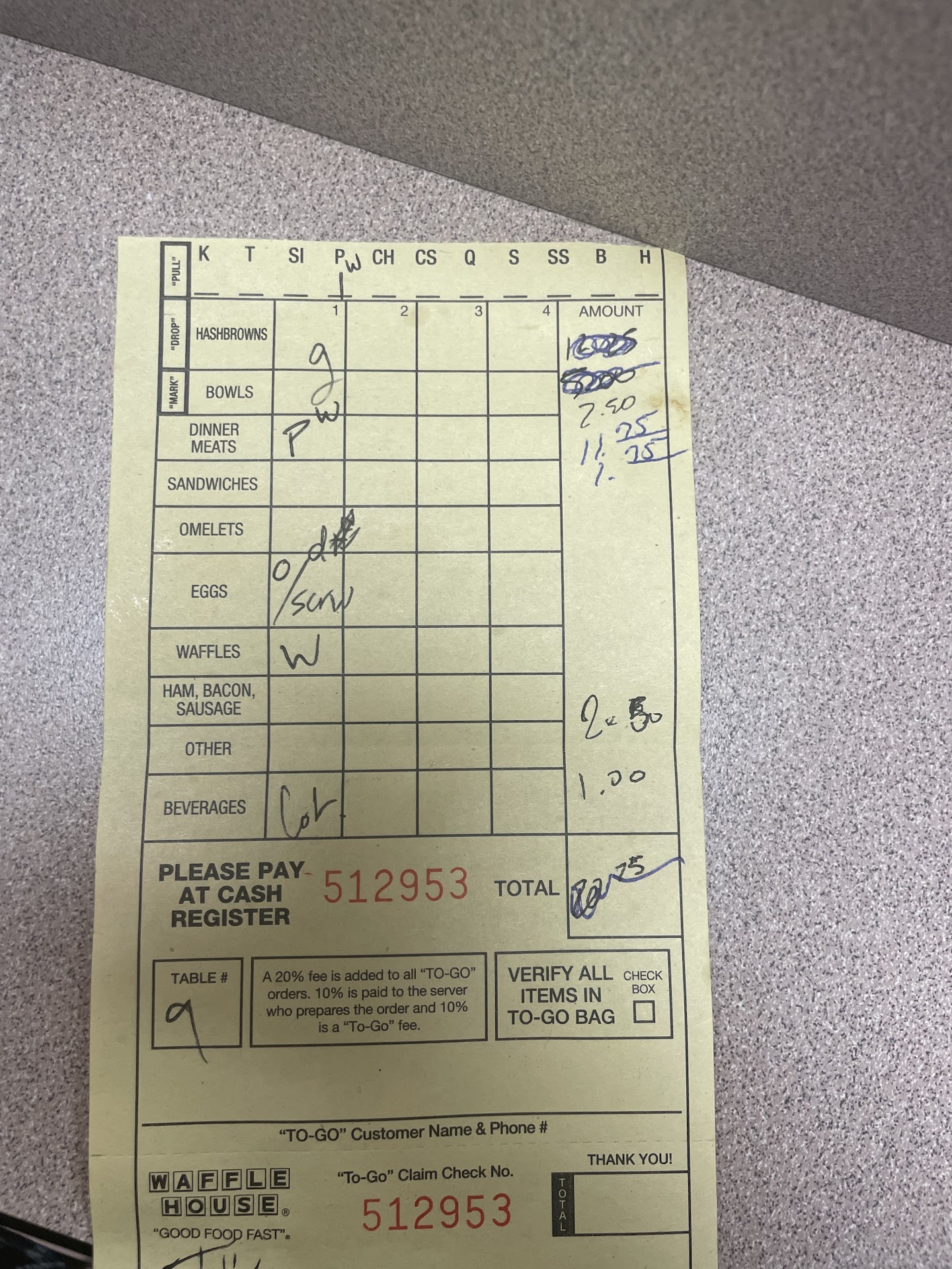 Read moreWhat a horrible experience I had today at the waffle house on NASA Rd One, 528. I meet with a dear friend who had just finished his cancer treatment. I prepared his taxes, and needed signatures. He lives in Alvin. I asked them to meet me at waffle house. My friend was not feeling well, and just wanted to sign the papers. We were approached by the waitress, my friend told her he was not going to eat, she said," then you can not sit at my table, this is not a office building, and if you want to do business, then go somewhere else" I was more than offended, when she huffed and puffed, I told her I was ordering! Now this is the same lady, 2 weeks ago, that everyone order, and I went over paperwork, with them. She didnt say anything about the $37. Food tab, or the $10 dollar I left. Today, There was 1 person at another booth, and 2 people at the counter seats. Now had this been a busy time...I would have not taken a table, for signatures on a piece of paper! My friend and I have both owned restaurants. Is that what you teach YOUR waitresses to say? I would have thought she would have been happy with Any table served, and the tip. Which I did leave only 10%, but my gut said leave her nothing. I am surprised by the ungratfullness of your waitress! I will find another place to order food, leave my tip, and get...