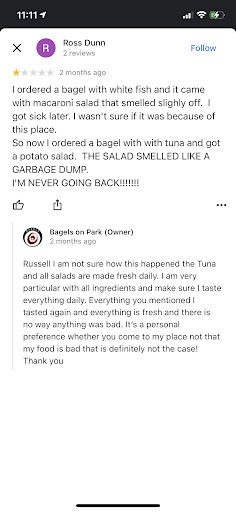 Hold the front door. PLEASE DO NOT BE DISCOURAGED BY THIS REVIEW in the photo. The macaroni salad from Bagels on Park is legendary. It’s better than my mother-in-law’s (hope she never sees this) and hers is REALLY good.