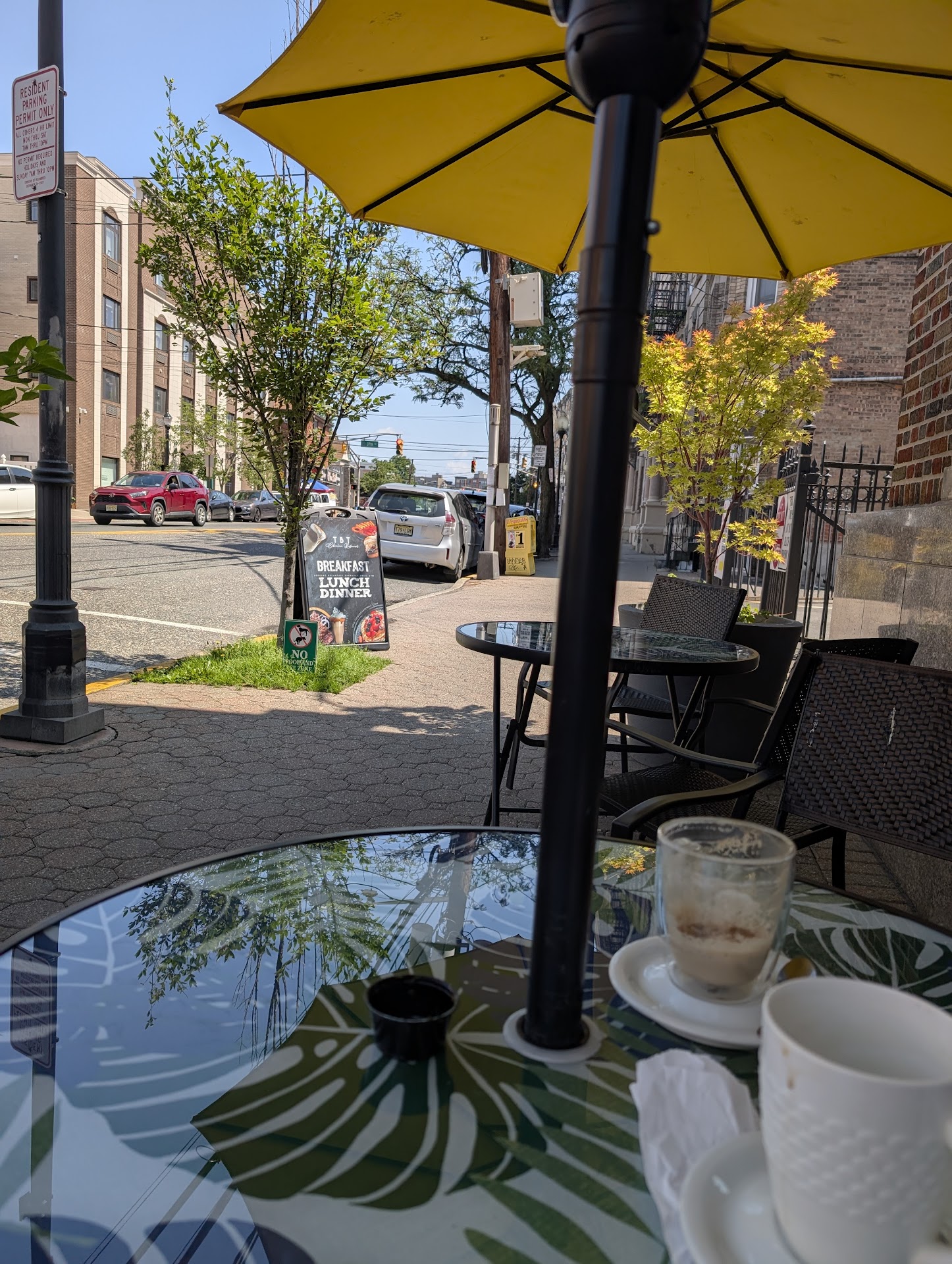 Read moreFirst, let me say this place used to be a bank and has a parking lot, which is pretty huge for a Weehawken spot. The large windows in colorful atmosphere, is very nice. The tables have a barcode to download the menu, however, the default language is Spanish and to convert to English takes a little doing. Once you get past that, the menu has an abundance of choices. We chose the empanadas and the chicharon ceviche, as an appetizer. The empananas, we're definitely our favorite. To wash them down, we had a coffee and a coconut lemonade. The lemonade had real coconut shavings, which was very delicious. For our main entree, we had the 5 star burger and the churrasco's steak. The bun on the burger was a little hard and the burger was cooked a little well for our liking, but had good flavor. The onion ring was a good call to rop the burger. The churrasco steak arrrived on a heated cast iron plate. Good portion and flavorful with a small amount of chimichurri sauce on the side. We didn't have room for dessert, but everything looked really good. When the bill arrived, we noticed that at the bottom, it said any party more than three, will have an automatic tip included which I thought was a little odd. Al and all I would try this place again. We arrived at noon and had our pick of any table. There is a large old safe which makes great photo...