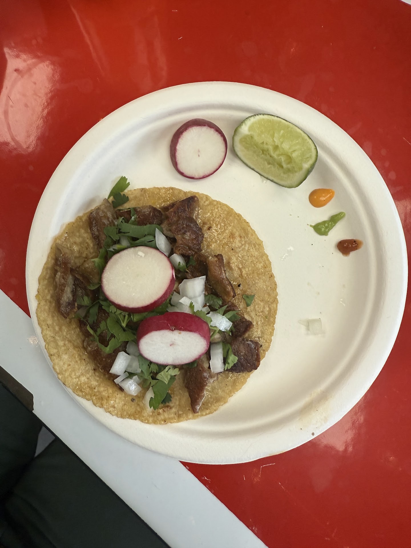 Read moreWhere do I begin… I ordered tacos to go for lunch -al pastor, chicken and brisket. While I waiting I got a tripa taco So crunchy almost like a pork belly texture very good. You can order 1 taco which is cool so you can try different ones. I also ordered chip and salsa (salsa is chunky full of all the goodness) Chips and guacamole (delish with great flavor not bland) The tacos al pastor meat was so well seasoned, the tortilla is soft and holds the meat, cilantro and onion w a slice of pineapple! The chicken and brisket ate a must as well nest is super soft. If you are in the area check them out. They have horchata and Jamaica drinks. The vibe is casual and...