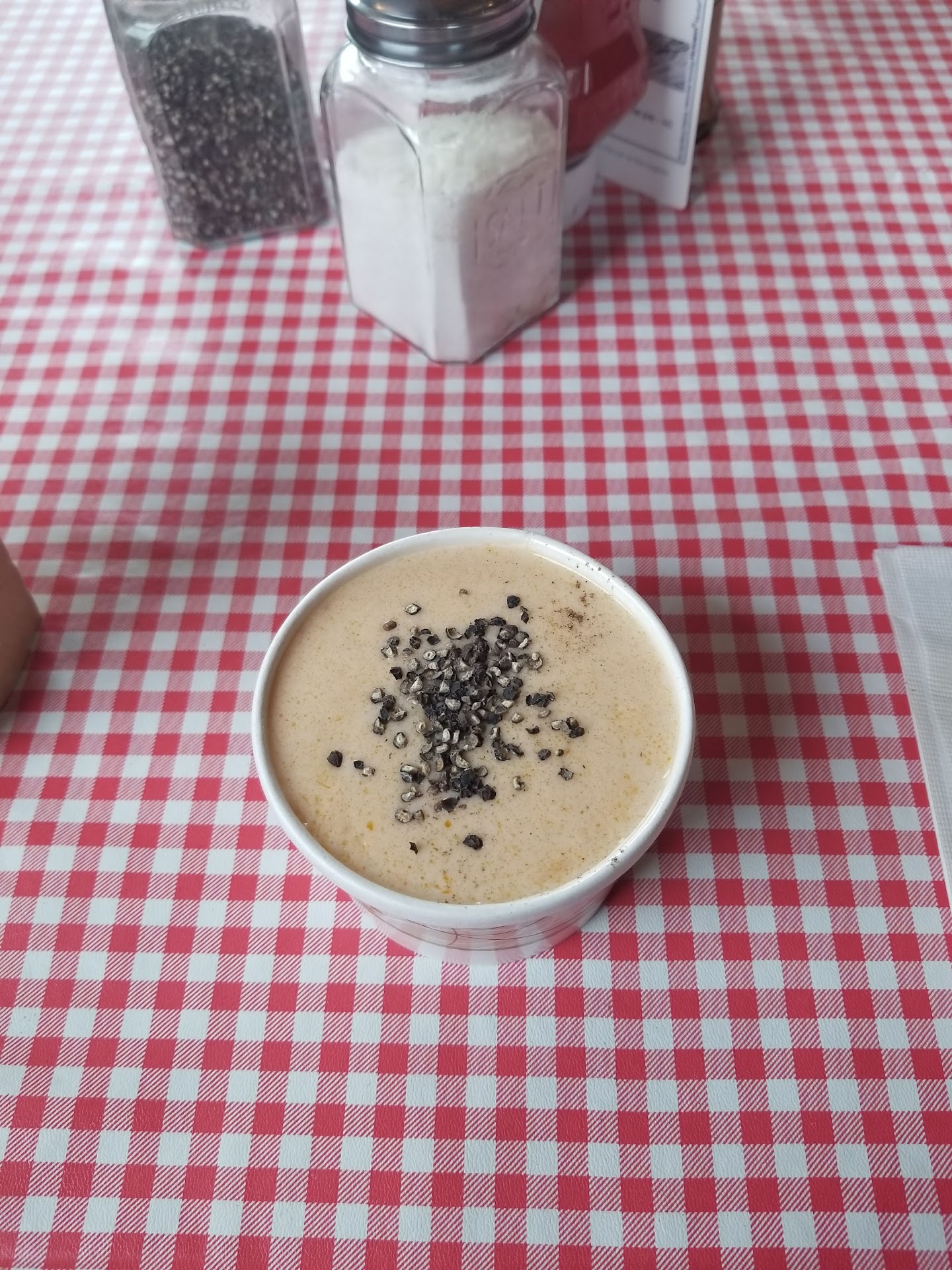 I found the soup tastes sour. I couldn’t believe it! I salted, stirred, but I couldn’t convince myself it wasn’t sour tasting. I hoped there wasn’t a dead lobster in their tank. I called the manager over explained the entire meal arrived barely warm so the soup went cold. He immediately replaced or re-heated the soup. Nice and hot! but still sour. I just didn’t eat it, finished the coleslaw and forgot about the fries all together.