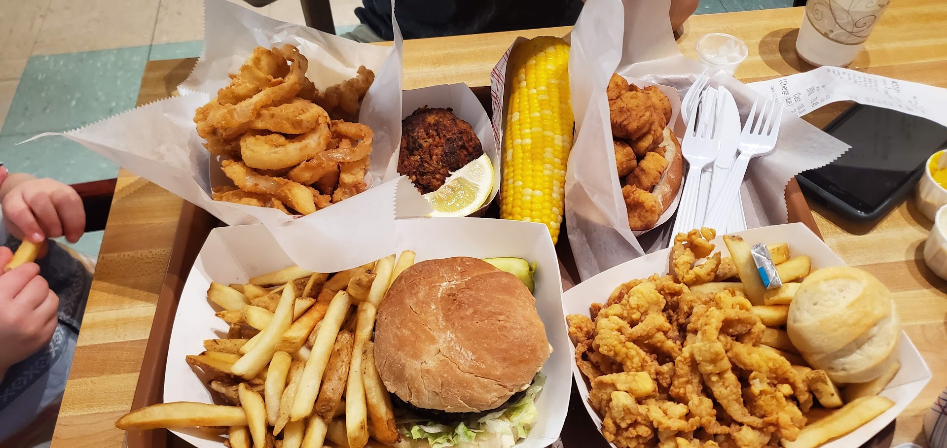 Read morePJ's is one of our favorite places to pick up fish and chips or a Cape Cod Rueben and head to the pier for lunch like we did today. My husband is a fan of their taco salad too. Keep reading... They also offer great fish tacos, mussels in various delicious preparations such as marinara or Thai, oysters, burgers, etc. There are always daily specials hand written on the board in the order window that you just have to check out! Because they all sound so good, I have a hard time making up my mind. But, no matter your selection, everything is always fresh.