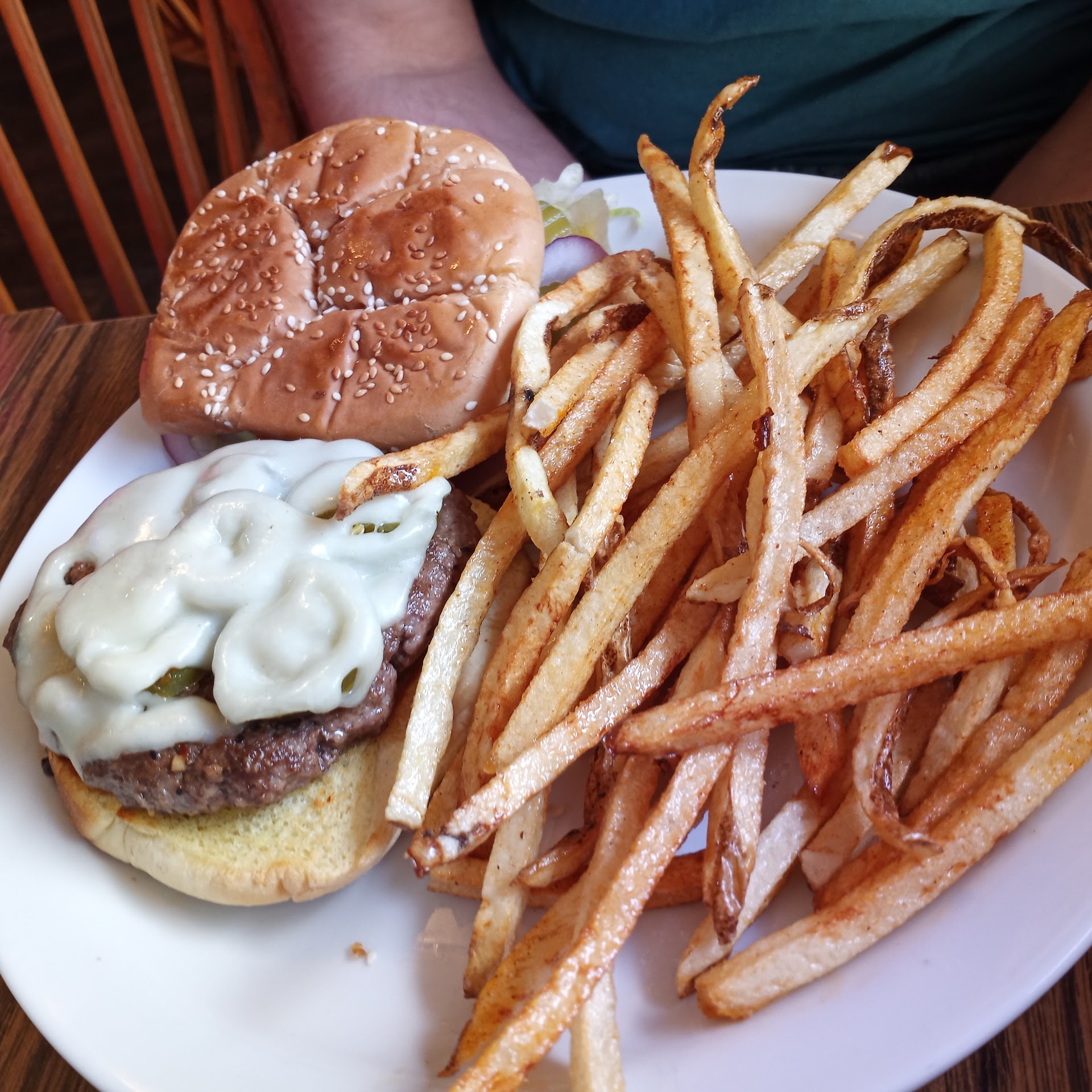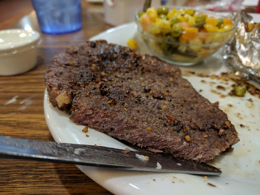 Read morePoor service. Worse food. Ordered the 12oz ribeye. Waitress never asked for how I'd like it cooked or what kind of potato I'd like. Had to tell her when she was taking my friends order and never asked my friend either. Ordered it medium rare as I always do. What came out looked nothing like a steak; let alone a ribeye. Was cooked well done and was maybe a quarter inch thick and the size of a small pancake. I asked waitress if it was in fact the 12oz ribeye and she had no clue and had to ask the cook. Verdict - ribeye. Not cooked to my order but only steak they had. Never again, cowboy kitchen up the road at least has actual steaks ... Pics are of the ribeye by itself and then next to my friends hamburger (Salisbury) steak which was...