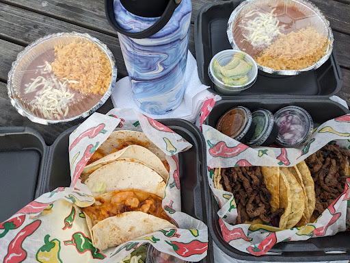 Needed dinner on a Saturday night while traveling from Raccoon Creek State Park back to Ohio, nearby places had a wait so we headed to this food truck. The high rating is well deserved - this food is AMAZING!!! We got the chorizo & steak tacos, which were very tasty, and the chipotle crema shrimp tacos, which were OUT OF THIS WORLD. The shrimp were perfectly cooked and the creamy chipotle sauce had just enough of a kick, mellowed out by copious amounts of melted cheese. Each dinner came with a selection of toppings, which barely fit in the tortilla with all of the filling, as well as a side of rice and refried beans. There was so much food we couldn't finish it all! Everything was ready in about 5 minutes and the guys running the truck were super nice. We ate at the picnic tables in the parking lot and thanked our lucky stars we found...