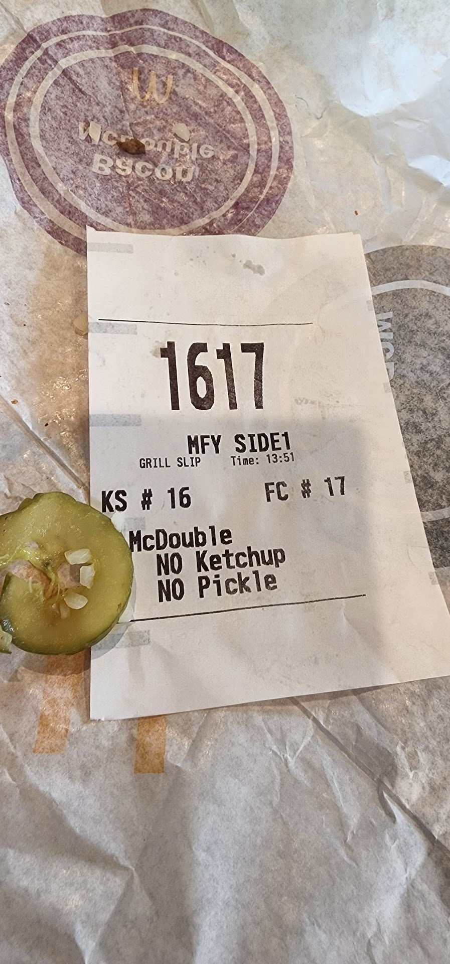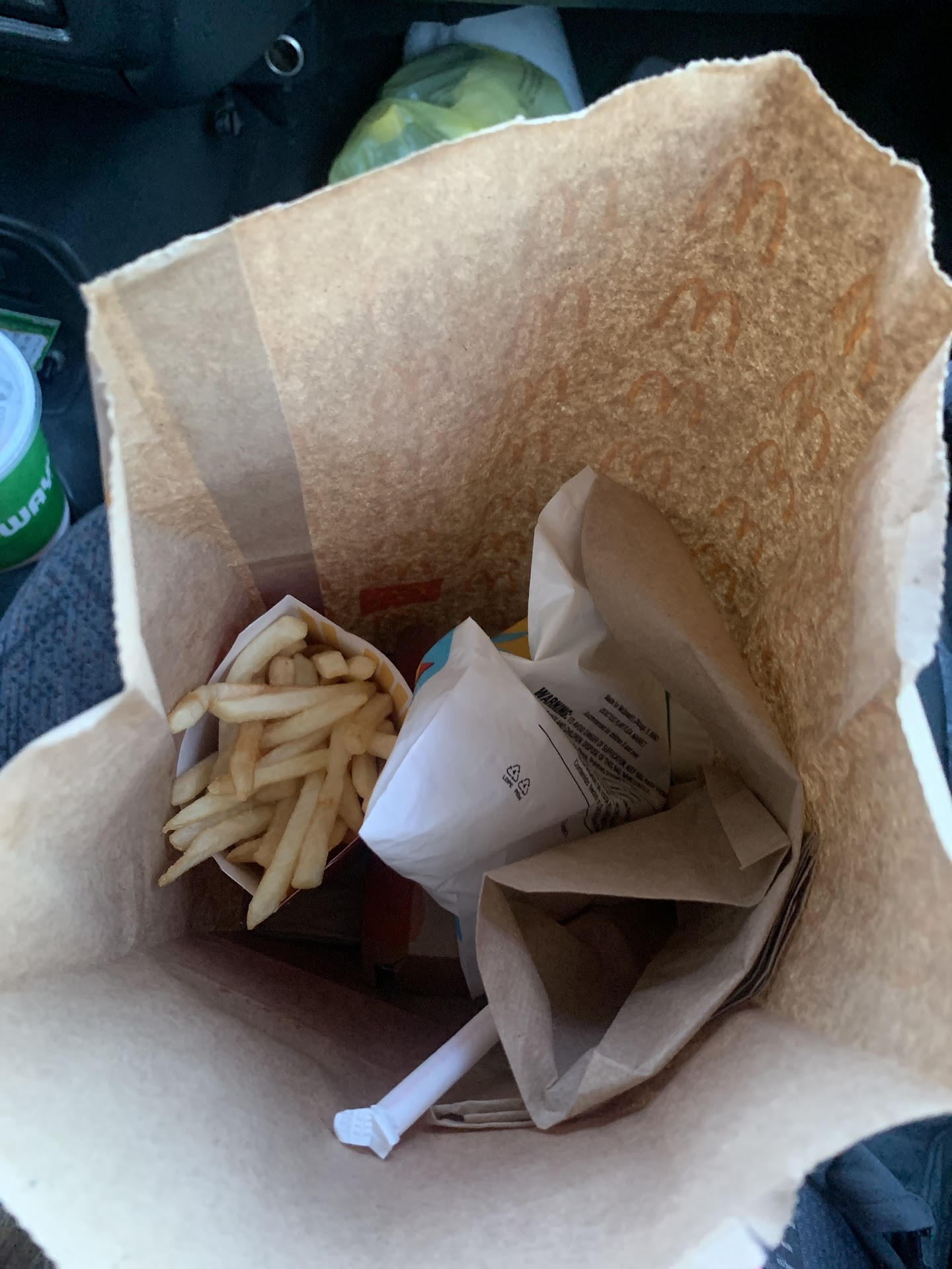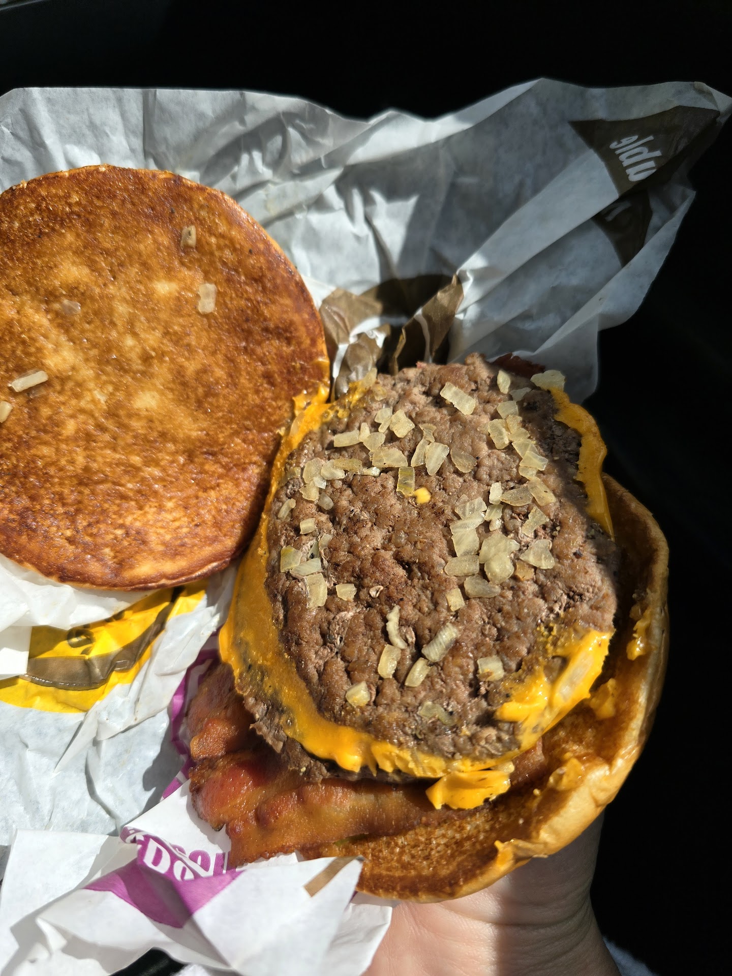 Read moreI'd have to say, literally the worst food out of the many I've been to. Yes it was peak rush at lunch but that was no excuse for all my sandwiches to have dried out(flaking apart) and SMASHED buns, drenched in grease with little to no ketchup or mustard. As well as the taste, it was off...almost like it came from a dirty grill and yes I know they don't grill em but it still had that taste. I ordered 4 double cheeseburgers and only managed to get 1 and a half down before I gave up and out of curiosity I looked at the other two and yep, they were just as disgusting looking as the first two.... that being said, fries were hot and fresh and the speed of the drive thru was surprisingly quick considering...
