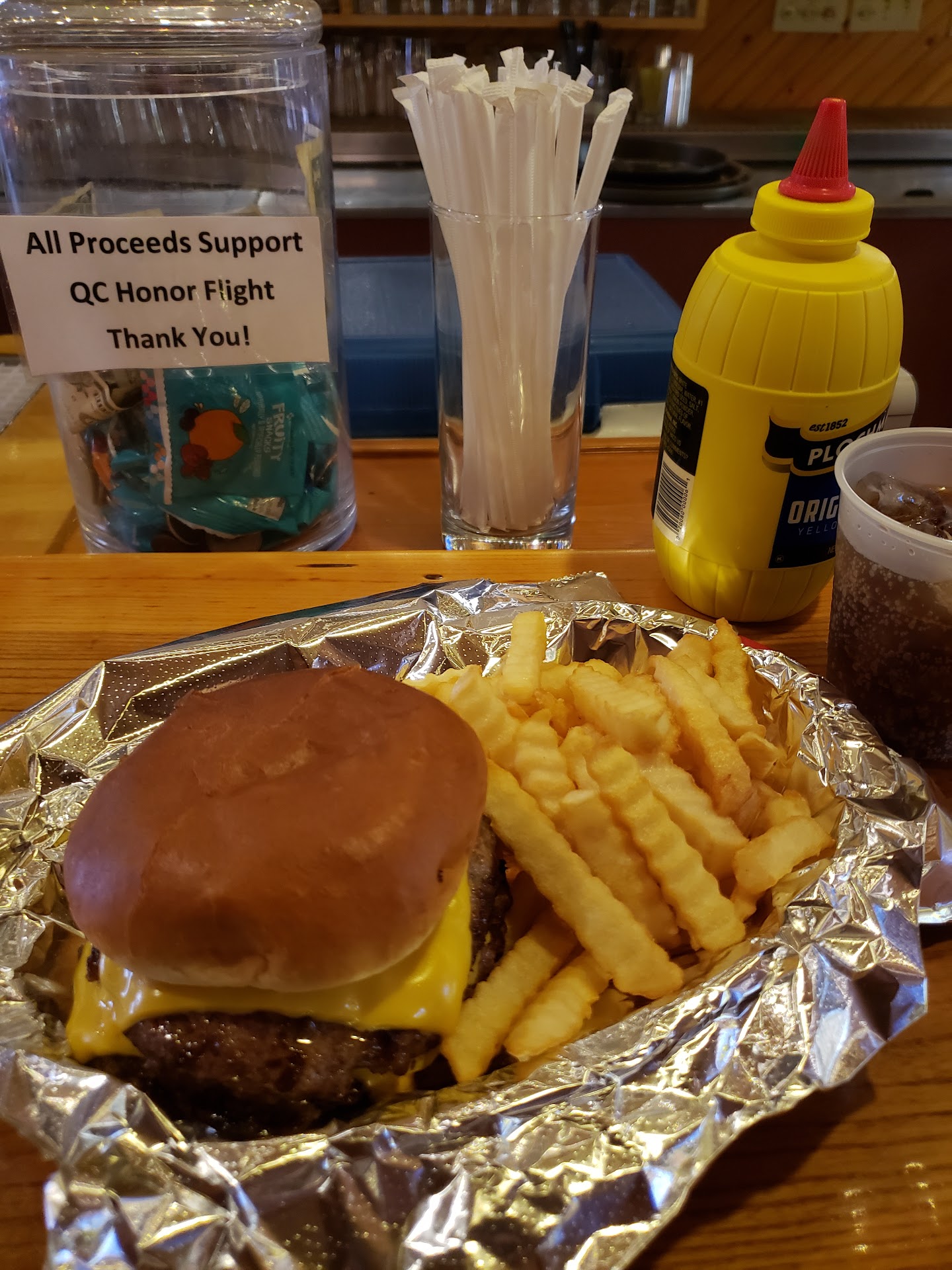 On his recommendation we tried a burger and a grilled tenderloin sandwich. The burger was large and juicy. The grilled tenderloin was twice as large as the bun, and the meat was served cut in half and then double stacked on the bun. It was tender, juicy, and very tasty. I like mine served with dark mustard, and they had it available.