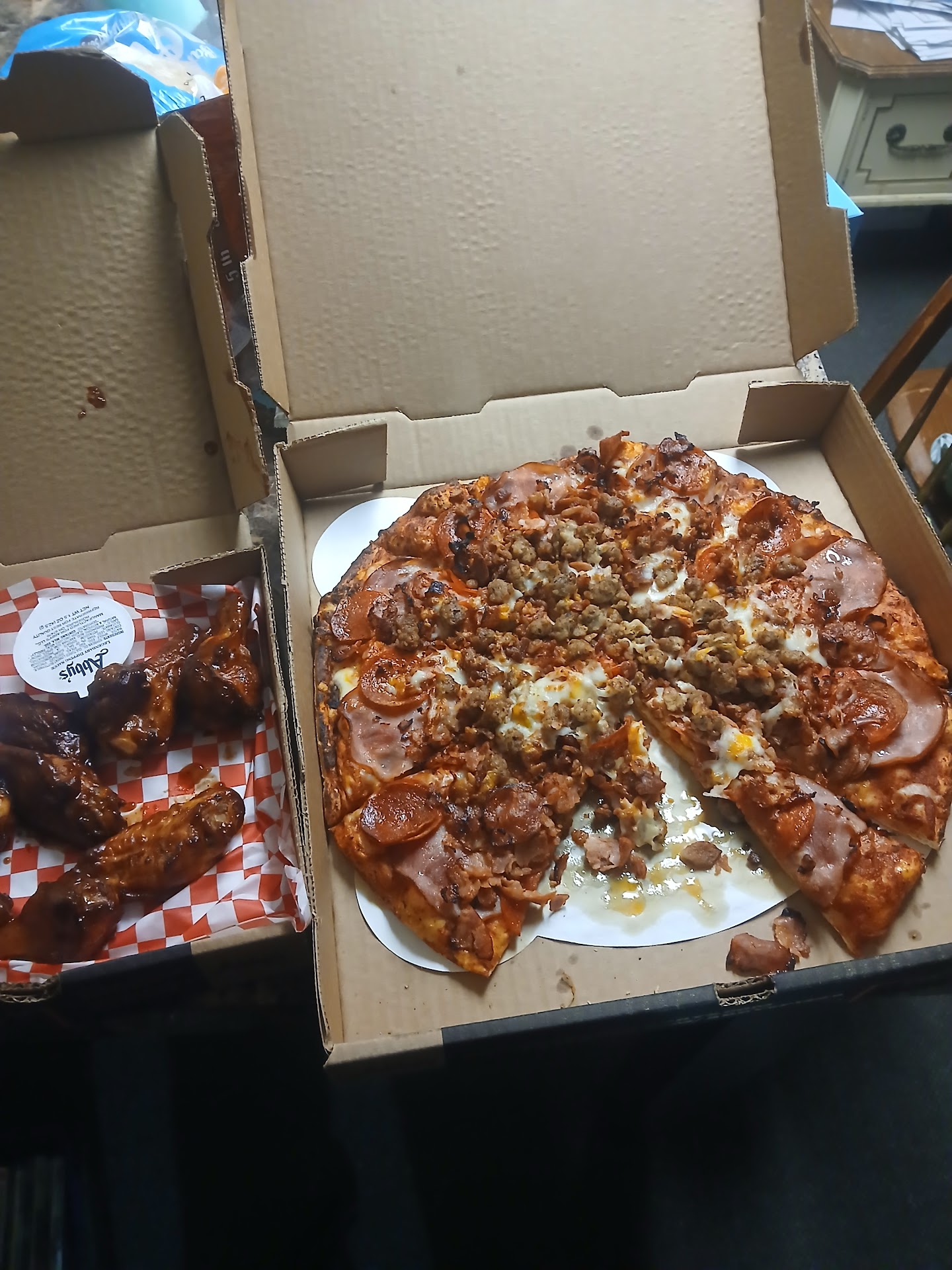 Read moreI expected better from Abby's. I've had their pizza at other locations and really liked it. The people were friendly but it did seem like there was more employees than customers. My pizza had very good crust, sauce, cheese, Canadian bacon, and pineapple. The big problem is it didnt arrive very hot (we were dining inside the restaurant) and it had a large amount (which is usually a plus) of what looked and tasted like RAW really thick slices of mushrooms. We asked about it because we requested the mushrooms to be cooked. The answer was that they were fully cooked but their slicer doesnt work right and makes the slices too thick and they cant afford to replace it because it costs too much. They did offer to remake it, but we didnt feel like waiting for another one to come out AND questioned whether they would be able to cook the thick mushroom slices any better than they did the 1st time. We wondered why they cant have one of the many employees make daily batches of properly sliced mushrooms, it seems like an...