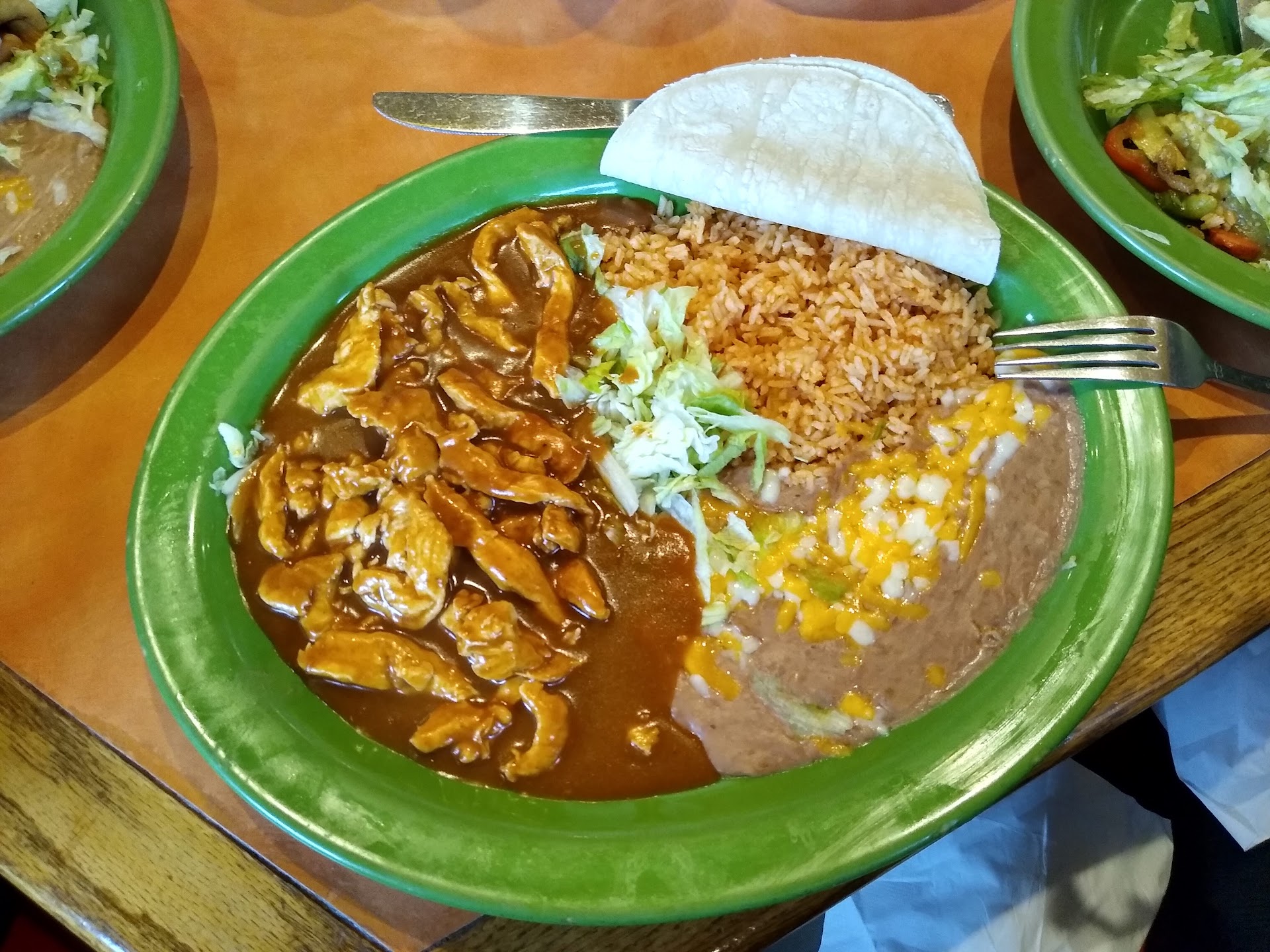 We chose this place randomly, but we were also intrigued that it's a former Sharis building (I like the architectural style). I was quite pleased with the atmosphere of the place (paint colors, decor and the tile flooring), the music, and the friendly greeting when we entered. I was quickly impressed when we got to the menu. It's been a while since we've been to a Mexican restaurant with so many wonderful options. My husband got the Pollo Mole and a tamale (a personal favorite), and I got the crab enchiladas with the seafood cream sauce, which sounded delectable, and is something I've never seen on a menu at any restaurant I've been to in the past. I was not disappointed! The enchiladas and that cream sauce were delicious! Actually, I wish I'd eaten them more slowly, soas to truly savor each bite. He was really happy with the tamale, which was nice to hear, because he loves GOOD tamales, but ends up disappointed more often than not. The Mole was also quite tasty! A little sweeter than average, but definitely not in a bad way. We finished the meal with fried ice cream, which they served in a tortilla bowl with a strawberry sauce, a tasteful amount of whipped cream and chocolate on top. It was perfect in e very way, and we left with pleasantly full stomachs and happy taste buds! 10/10 we will eat here again, and recommend this restaurant to anyone who enjoys...