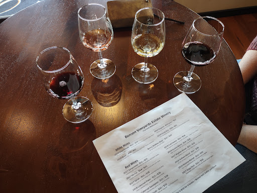 We stopped to sample the wine at this winery. My wife enjoys a glass of wine and likes to sample different wines. She chose this winery because of the view and it was on top of a hill. I thought that the cafe myth had more to offer than pizza because my wife called it a restaurant but she tricked me because she knew I was not too keen on the idea of a winery. My wife liked the wine but thought it was too expensive and the price didn't reflect the taste of the wine. We went to other wineries which had a better taste with a more affordable wine. The pizza was good but too small for two people and also overpriced. The view was great but it was too windy. It was so windy that the wine glasses on the tables were flying out and breaking. What bothered me was that no one was coming out to clean the broken glass. Even when I went in and made them aware of the situation it took about 15 minutes before anyone came over to clean up. One of my favorite things was to see the dog coming around begging for food. It had a collar that said "please don't feed me". I couldn't have because there was not enough pizza...