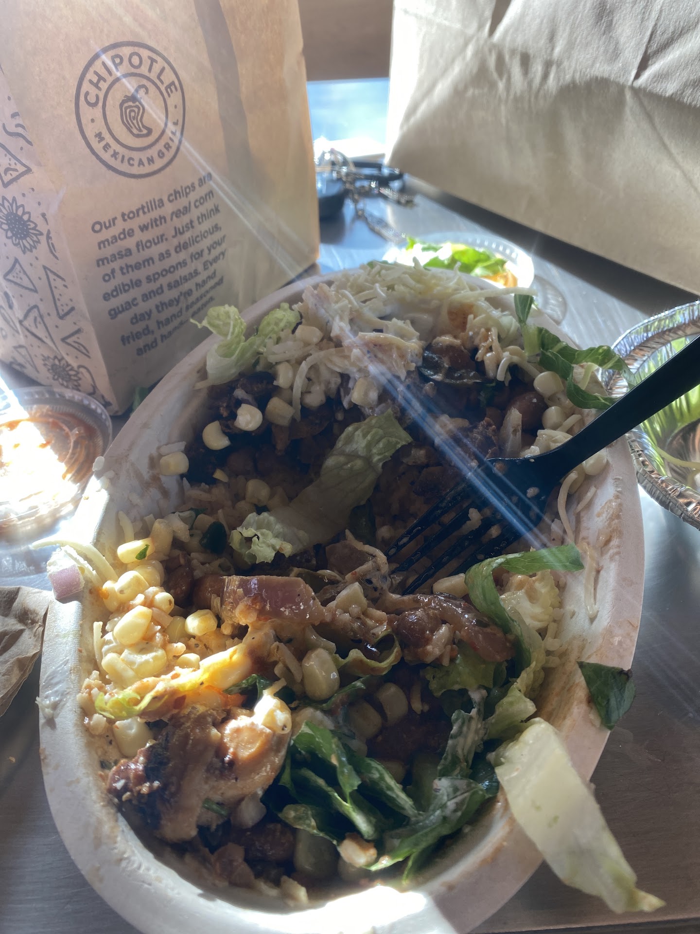 Read moreI love Chipotle but this experience was sub par at best. Ordered in advance on line and had a pickup time of 1:40pm sat in line for 15 minutes while the truck in fron of me waited for food. Finally I got the the window 15 minutes after my food was ready and they told me it wasn't ready. I could see my food sitting there on the counter while they worked around it. After 10 more minutes of sitting there and multiple employees coming over and looking at the food then the ticket then do nothing about it. Finally an employee put lids on the two bowls gave us our food and apologized for the wait. I skipped across the street to eat because I was hauling a trailer. The food was ice cold and they didn't give us forks or napkins in the bag. Super bummed. You could tell that all the employees were very young and unorganized. Hope someone is held accountable for the service they were...
