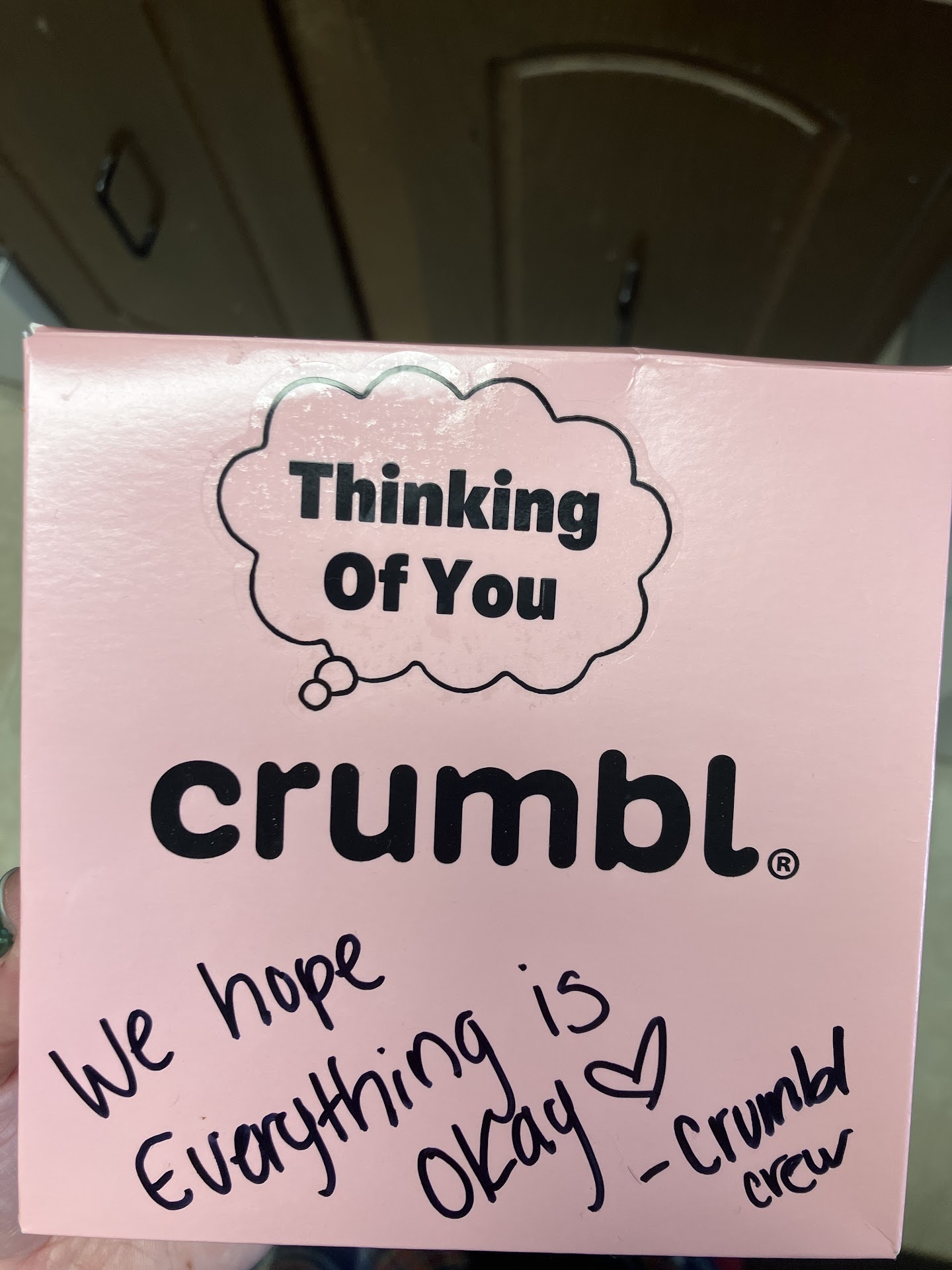 I have been so excited to try the Key Lime Pie this week so I placed an order online after I got off work with the option to have it brought out to my car. When I drove up, I noticed that there were two staff members doing some cleaning and brooming. I figured I would just have to wait a little, which I didnât mind because I understand wanting to tidy up so it makes it easier to leave at the end of the shift. I was speechless when I noticed the girl stop brooming and use the same gloves she had been using to broom and clean to package my order. She didnât change her gloves and proceeded to start placing my key line pies in the packaging touching the edges with her gloves to help fit them into the box. Additionally, when she walked out to my car she threw the box at me and I was barely able to catch it with my hands to prevent the box from spilling all over my lap. This all happened at 7pm and I saw that crumbl is actually open until 10pm. I hope this can bring awareness for better sanitation practices and food safety...