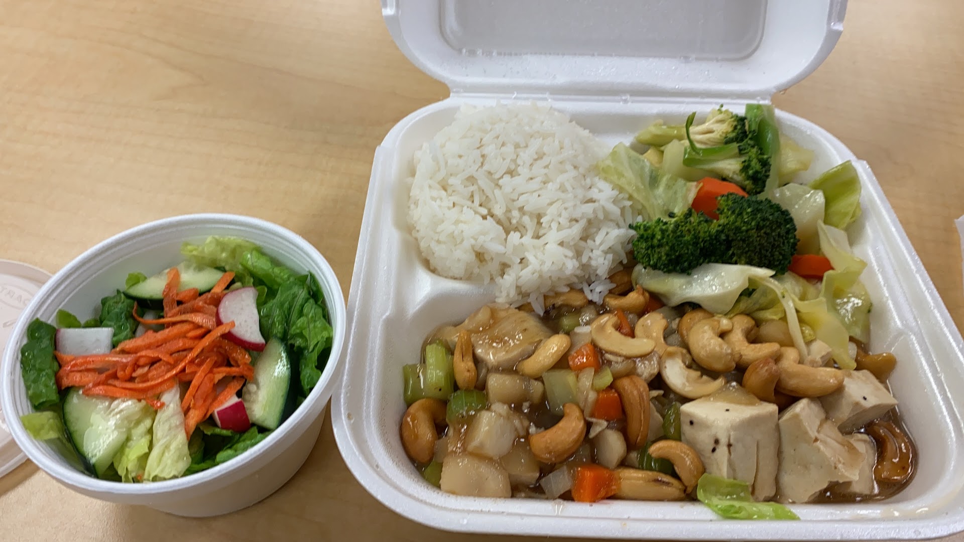 The spring roll dipping sauce (apparently also the salad dressing) was very watery and had no texture. It’s difficult to dip spring rolls into water. Watery dressing doesn’t stick to salad it just pooled in bottom of container.