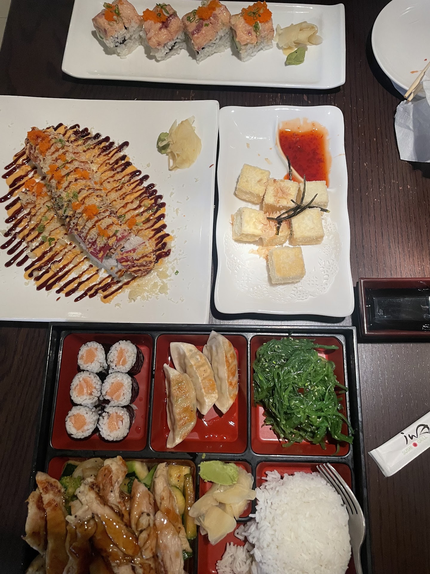 We were in town visiting family last month and walked past this restaurant during the downtown wine walk event. When I saw the high star average we decided to come back for dinner. We came early since we had our baby with us and we were able to be seated right away. The server was a really nice gal but the service was slow. Luckily we were ready to order by the time she came back. We got some edamame to snack on and I asked for a little cup of rice to keep my baby fed and occupied. Well then we waited for our food for over an hour…it took over an hour to get 4 rolls. At one point I looked around the restaurant at all the tables which were full and not a single person had food…And I can understand if it was worth the wait but sadly it was not. This was the worse sushi I’ve had ever had. The seafood was not fresh, it was all frozen and thawed, especially the shrimp, and tasteless. The tuna was “fishy” and not good. I’m honestly surprised I didn’t get sick after eating here. Again the waiter was apologetic but something was definitely up this night. But she made a comment that made it seem like the restaurant didn’t know it would be so busy…on a Saturday night??