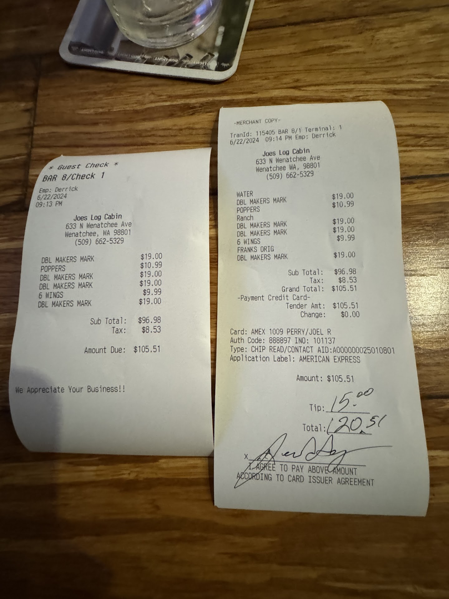 Read moreWaited 1.5 hours for our food, party of 4, they forgot the salads , emptied keg was told beer was on the house then tried to charge us for it, won money on pull tabs waitress brought me more even though I didnât order them then came back and said those were somebody else, already pulled them ( they were losers ) , I had my weight dollars sitting in the window sill , she came to collected and said sorry told her to use 2 dollars worth of min and give to who it was suppose to go , then she gave them all 8 dollars worth of winning to the other table and said oh I thought you said all 8 were winners, nope I want my 6 bucks , long story short...