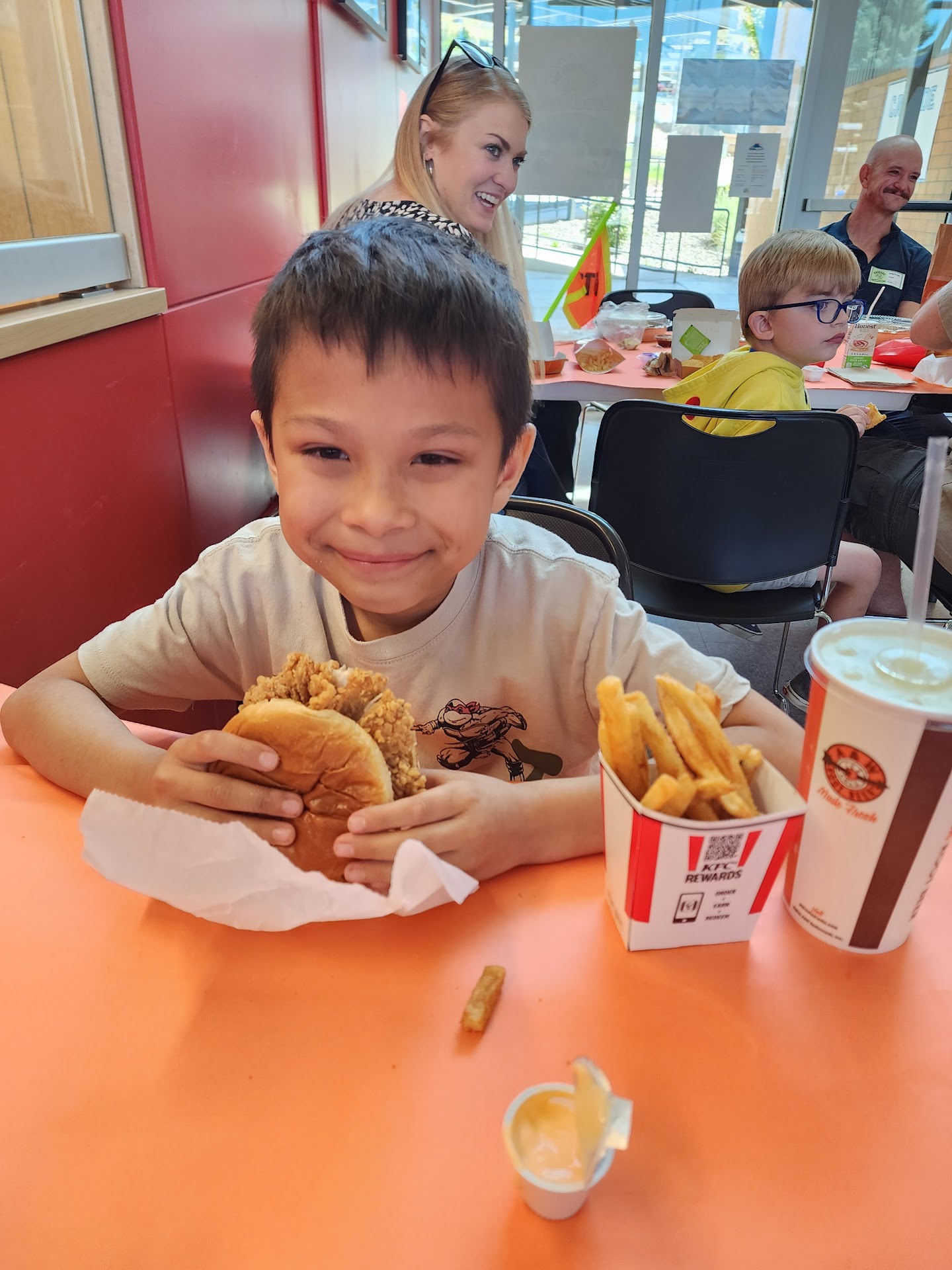 My son got a student of the month award, so he got to have lunch with me. His request was KFC and he got what he wanted, and I'm sure you can tell from the pic that he was a happy boy!