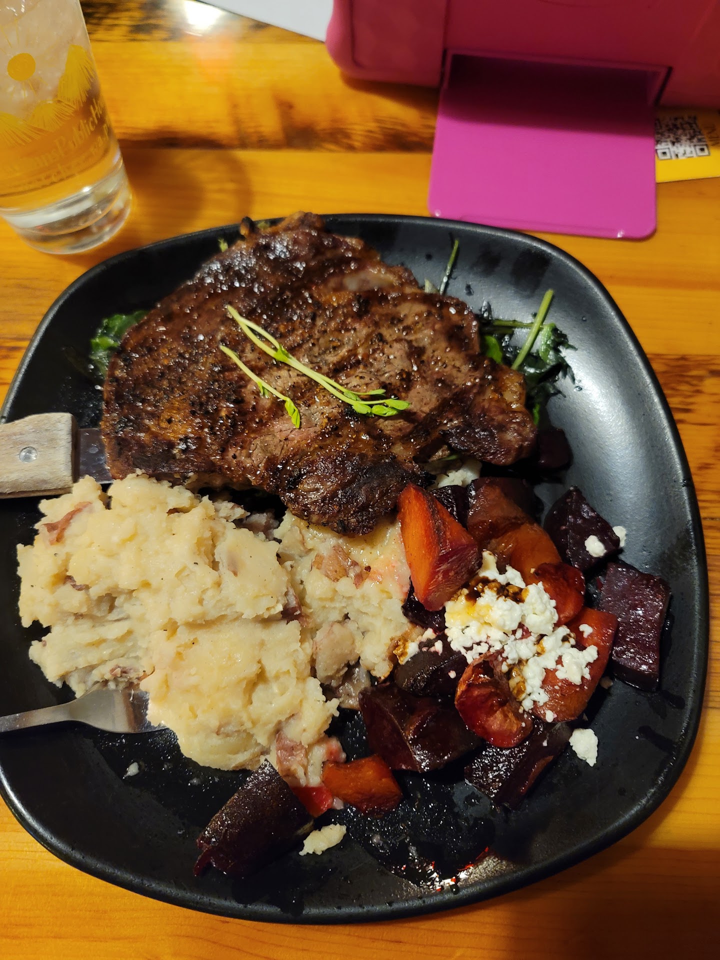 Other than the bread, the one item that was slightly seasoned and done well was the side of mashed potatoes with the steak dinner. Walking away with an $80+ bill (we had two NA beers on our tab as well) between the two of our dinners was such a disappointment since I felt we would have had better food at most other restaurants, if not just cooking at home.