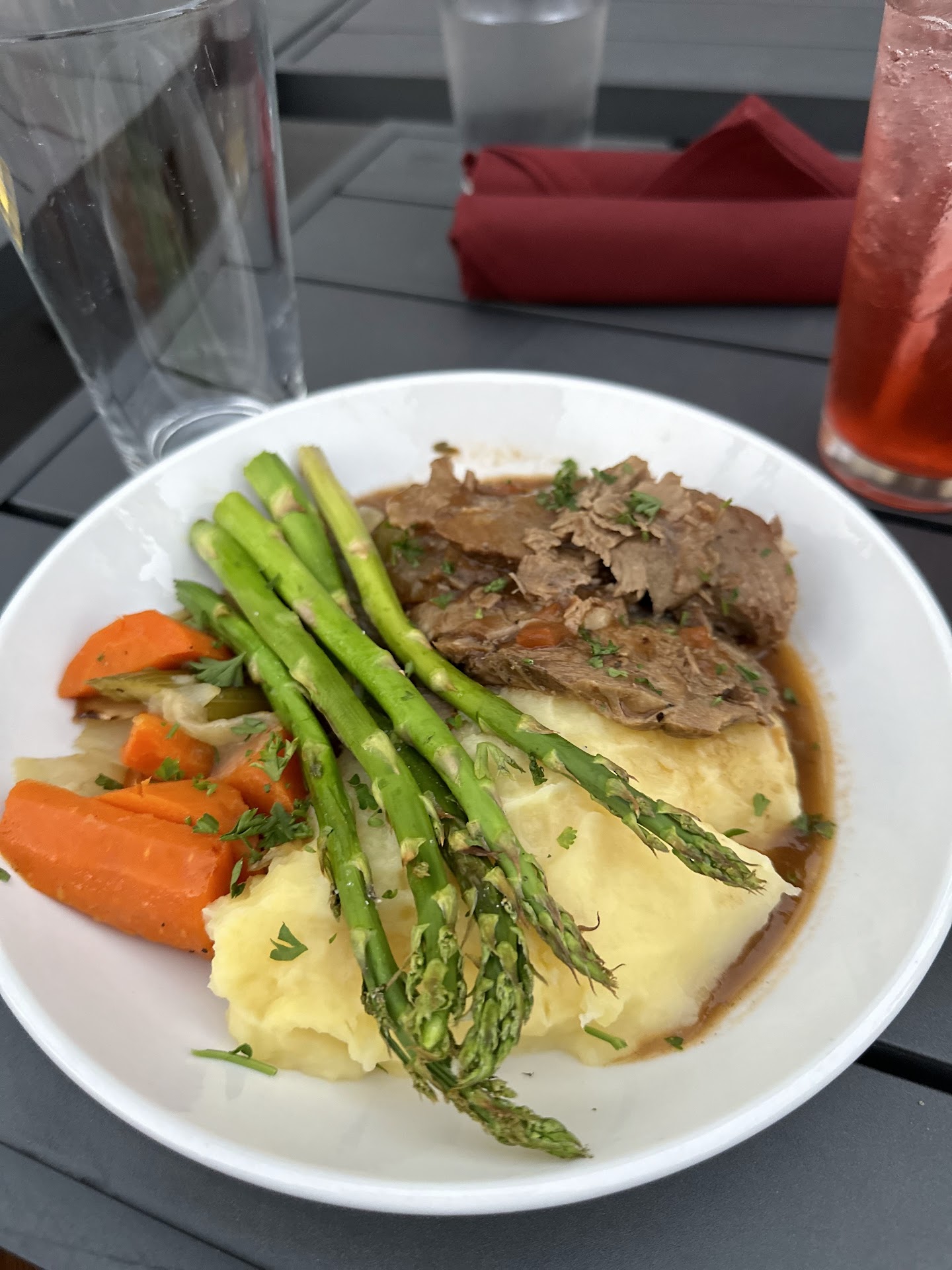 Read moreWe sat outside because we had brought our golden retriever, and the staff was extremely accommodating. They asked if she needed water and brought out a dog bowl along with a pitcher of water for her. The waitress was extremely easy going, and got our food and drinks ordered and brought out quickly. The drinks were delicious, and pretty averaged price for a hotel bar compared to what others seemed to have thought. Food was really good, and better than BK or some fast food location in town. Would highly recommend to all who stay...