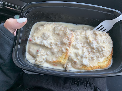 The menu had a plethora of egg sammies way beyond the basics, and anywhere that serves Mama Lil's Peppers gets bonus points in my book. The food was tasty - me, breakfast sammy; mom - biscuits and gravy. The sammich was melty and yummy. The B&G was stupendous. I'm a former brunch chef so I know a little bit about breakfast food, and the biscuit here was fresh fresh baked, fluffy, grilled on the half, all as god intended. The gravy was, I'm sad to say, better even than the gravy I make at home. Probably #2 out of maybe 100 different brekkie gravies I've ever tasted. I think I even spied some saffron in it - expensive as heck!