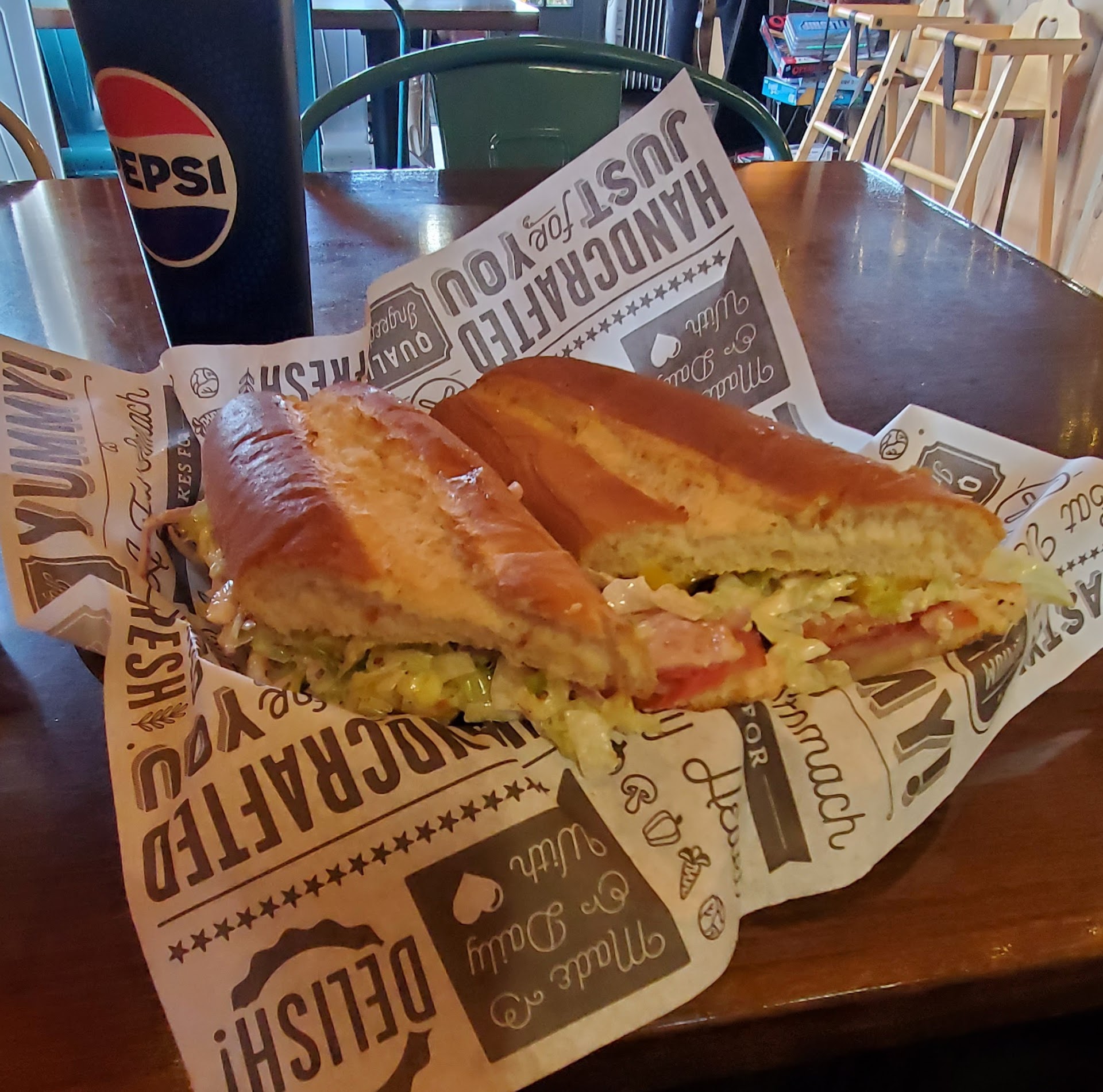 Well, I didn't order a sub and maybe that was the issue. What I ordered instead was a chicken caesar salad, big mistake. First off, when I pay $15 for a salad, I am expecting something grand. What I got was a small amount of lettuce (at least they could have gotten this right), and what I refer to as preformed blubber chicken, chicken that is made up of all sorts of parts of the chicken, then smooshed back together with a blubbery consistency. Unfortunately what they didn't give me in romaine, they gave me in chicken, and rock hard croutons, with a little bit or parmesan. But, the dressing was good. If Wendy's fast food restaurant can give you a chicken salad for nearly half the price, with a real portion of chicken breast, I expect more from a restaurant like this. My daughter ordered a chicken sub, and said that it didn't have much flavor. I know businesses are struggling today, as well as the paying public, but if they want to remain in business, they are going to have to try a little harder, and give you...