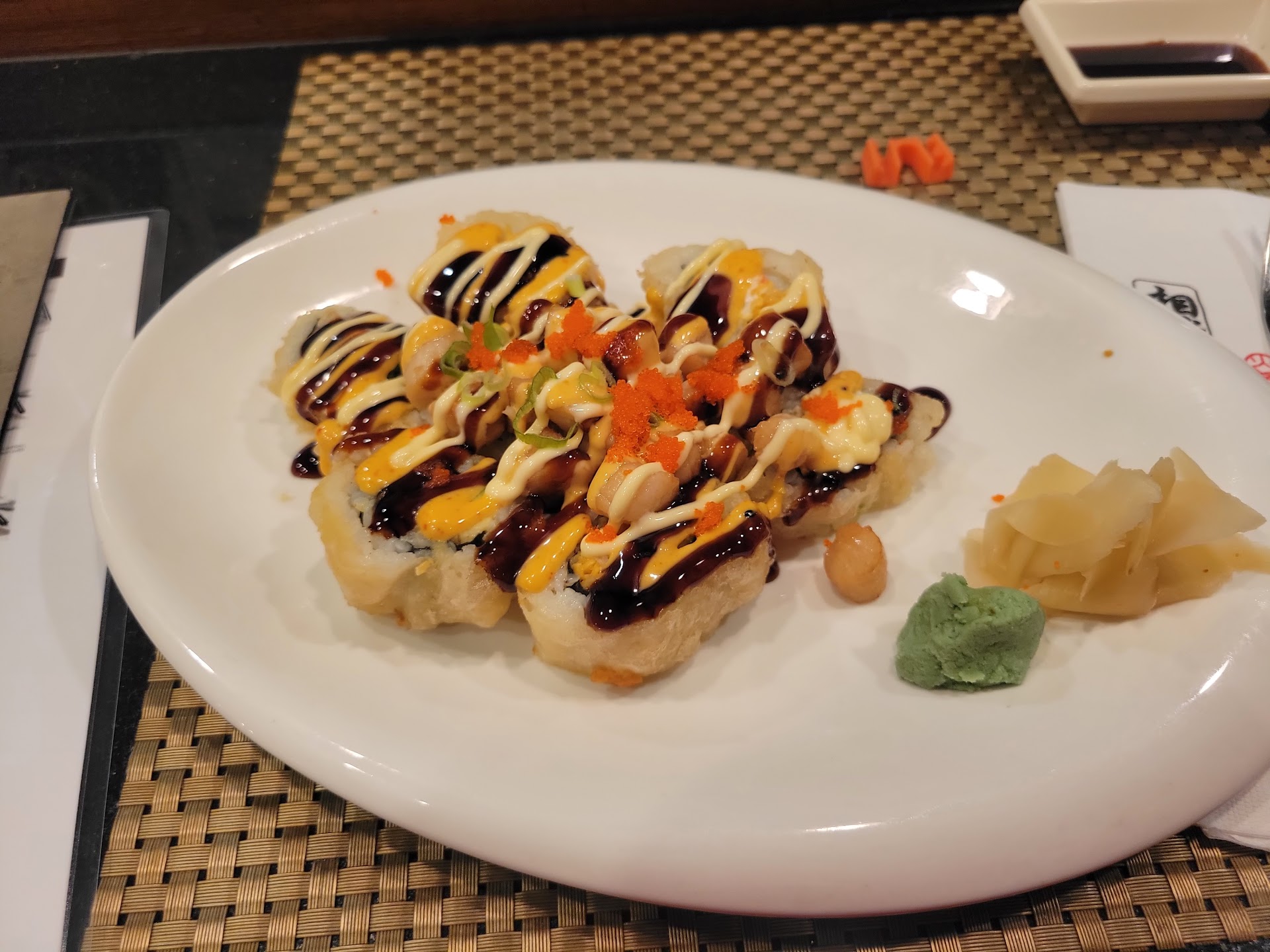 Read moreOk the food was good. If I am not happy, I try to wait a few days to review. My entire issue is with our service. Our server was nice, clean cut, well spoken. Took our order. We ordered appetizers, my wife a main dish, and I ordered 4 various sushi rolls. My wifes main dish arrives very quickly to the table. This was our first indication something was off. Then 2 of my rolls arrived. Still no sign of our appetizers. Once my wife had almost finished off her main dish another one of my rolls was served, and another 5 minutes later our appetizers finally came out of the kitchen. At this point we are thinking ok maybe this is like one of those slow down and really appreciate it meals, we talked about it and patiently waited on my premiere signature roll I had ordered… You know the big bad boy… 5 minutes roll by and our server drops by for the “do you need anything else?”. He apologized and got the kitchen to make it up really quick. I appreciated that, and ate a couple pieces. My wife asked for a to go box and he handed us a brown paper bag, no tray no box. Brown lunch sack with their logo?!? We see another table get a little tray to put their sushi in and a bag. Im not sure why the service was so inconsistent from one patron to the next. Very...