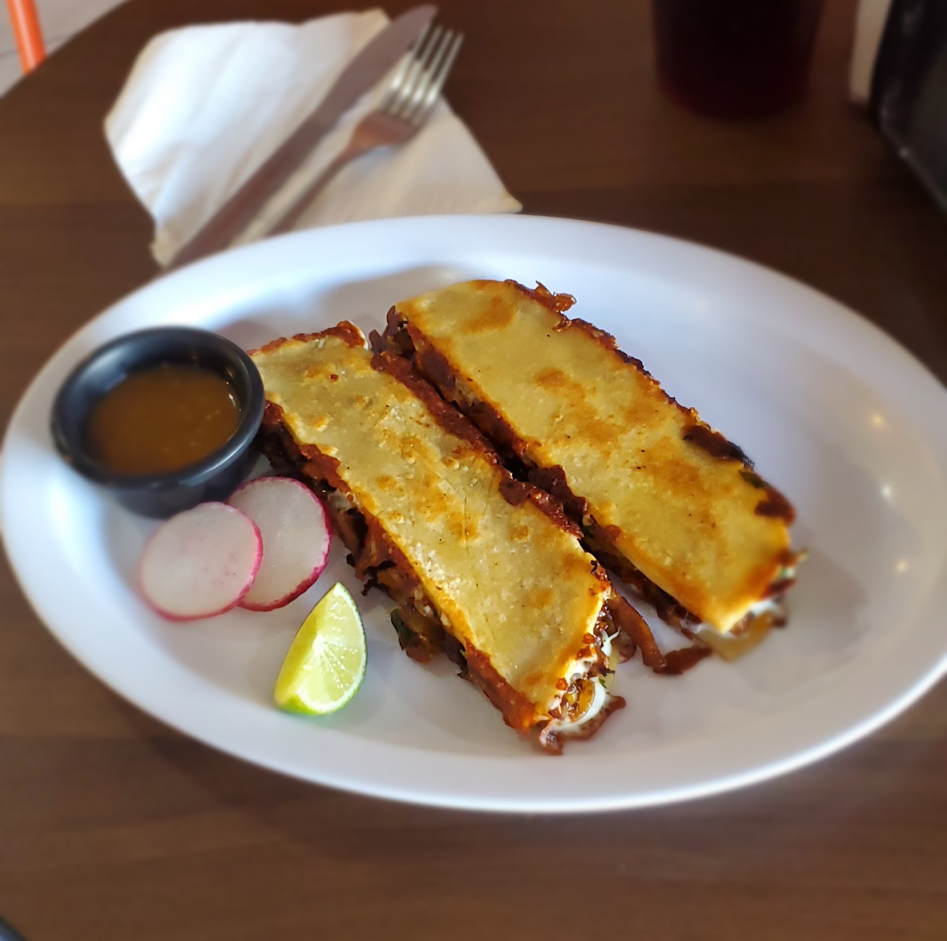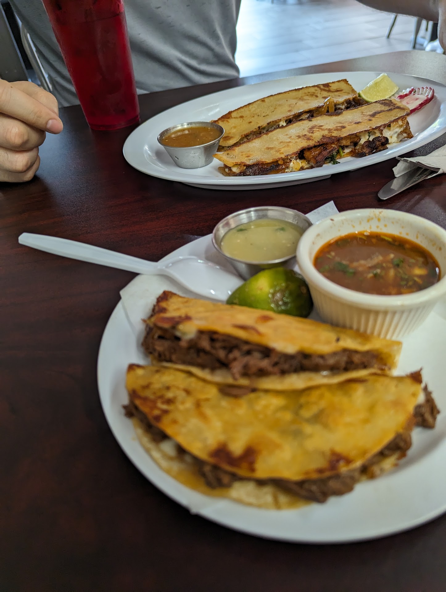 My husband ordered a machete and I ordered a quesabirria, and let me tell you that the first bite I took made me so incredibly happy and so devastatingly sad at the exact same time. It was in that moment that I realized that I thought I'd have been eating really good Mexican food in Seattle, and compared to this, I hadn't. I realized that I would only get to taste this amazing food once or twice a year and so I tried my best to save her every bite and ended up making a second order because I just couldn't get enough of it.