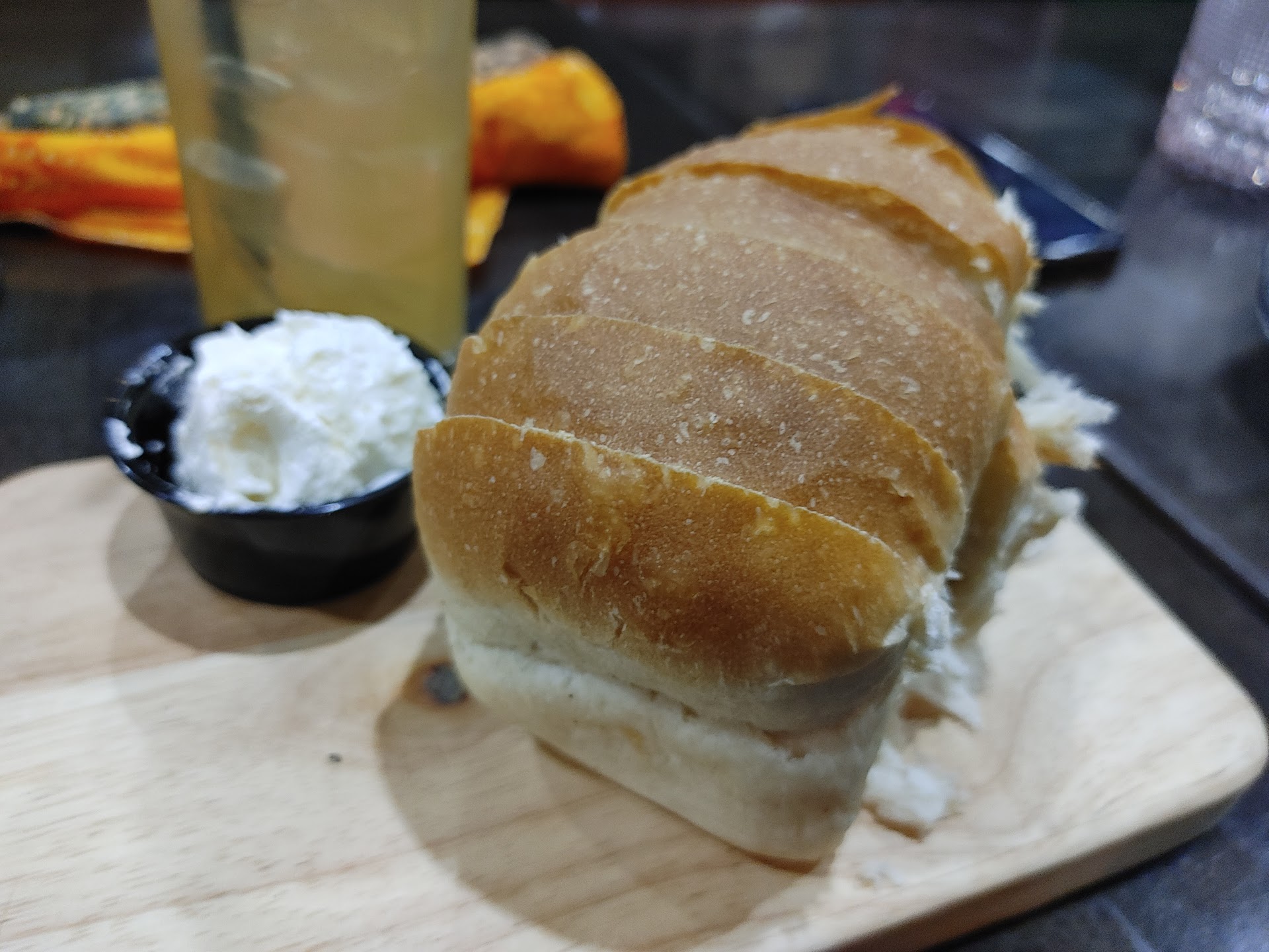 My wife and I went back and forth on what we wanted to order; we kept selecting the same items, and decided to split the difference and share whatever we settled on, which ended up being the Angry Chicken Fettucine and the Burger Dip, respectively. Some soft, warm bread would soon arrive, which was thoroughly enjoyed by all, including our newborn son. Both entrées were fantastic, with the fettucine being the preferred of the two: it had enough kick to be noticeable, but not overpowering, and a potent flavor that both of us enjoyed.