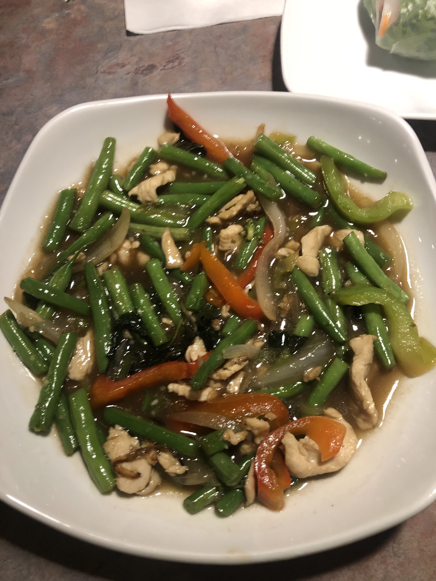 *We chose this place because of the gluten free availability on the menu and the fact that they are able to make most things on the menu with gluten free sauce. *We both had the Thai Basil dish (mine gluten free with veggies and brown rice and my husband's chicken and white rice). I asked for spicy (level 3) and my husband no spice. I found myself requesting more ground chili's from the back, it wasn't quite spicy enough, but I know that is better than over spiced. We also were both slightly disappointed in the flavor. I guess we expected something called "thai basil" to have a basil flavor. My husband was disappointed in the small amount of chicken on his dish. The dish was quite salty as well. The rice was delightful though.