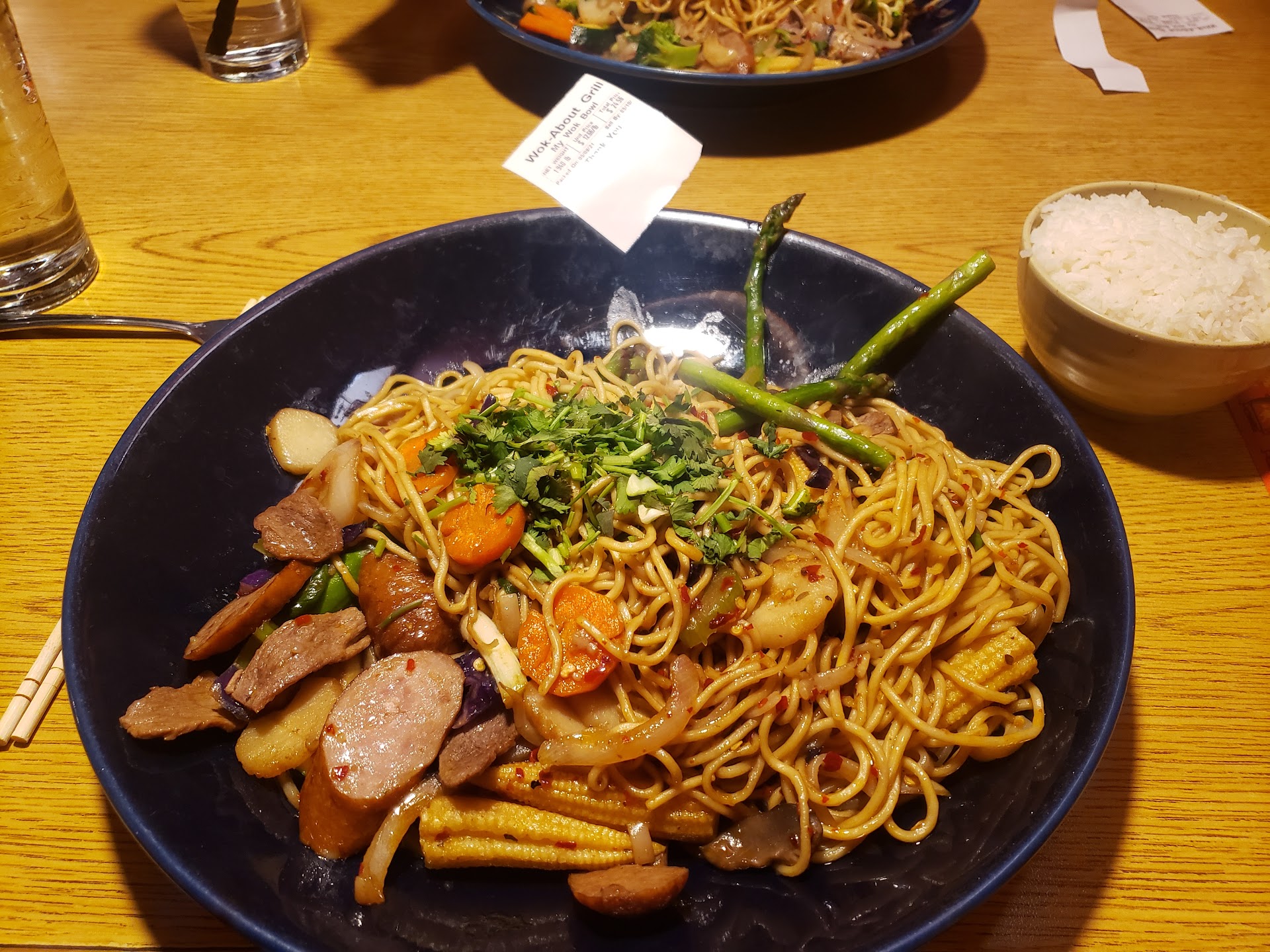 This is one of my wife and my favourite places to go for dinner. The build-your-own stir-fry plan is unique here in town, and they always have a great selection of high-quality ingredients available. They have recently (July 2016) lowered their prices dramatically, so if you've crossed their name off previously as too expensive, check them out again! If you go during peak dinner hours, expect a short wait, on the order of ten to thirty...