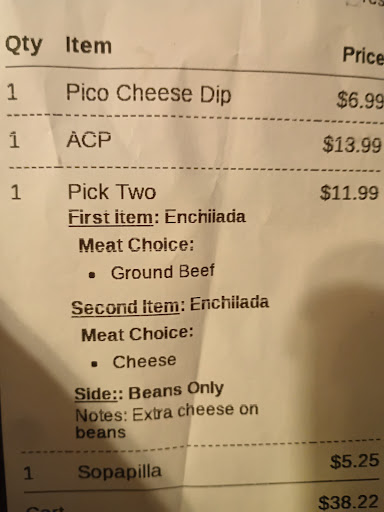 The cheese dip and salsa is good. I would come back just for that, but other than that my food was not good. I ordered the combo, beef burrito and chicken quesadilla. The chicken quesadilla is literally just shredded chicken. No flavor, not seasoning, nothing. It tastes like it's from a can. Even when I added some beans, rice, sour cream, salt, and cheese dip it was not good. There's no masking the bland, dry, canned meat taste. The burrito is hard to describe what's wrong, because it did have flavor, but....not what I want to keep putting into my mouth. It just tasted off. Beans and rice are bland and flavorless. Kids meals the same. Chicken Enchilada and beef burrito. My husband got a Torta Cabana. There wasn't much meat, but he says it had great flavor. The fries were also very good, but I don't come to a Mexican restaurant for fries. Beer was good,...