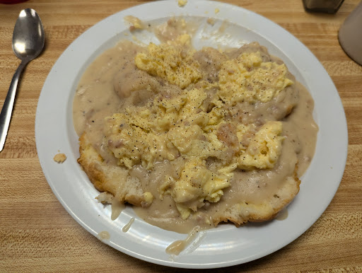 Have been in several times lately. At first I was pretty impressed with my visits but today will make me pause before I go back. We went in at 1:50. They close at 2:30. The waitress who has waited on me before and was very good had a look on her face like "oh no, a customer". One area had just been mopped (preparing to close I guess) so we sat down where she told us to. She was not a good waitress and everything on my plate I was served was cold. The usually delicious biscuits they serve was cold and dry. Forget about the butter melting when it was put in the biscuit. So disappointed. Not only do people expect a friendly server and reasonable price but you surely should be able to expect hot food. Not cold just because it is 40 minutes before...