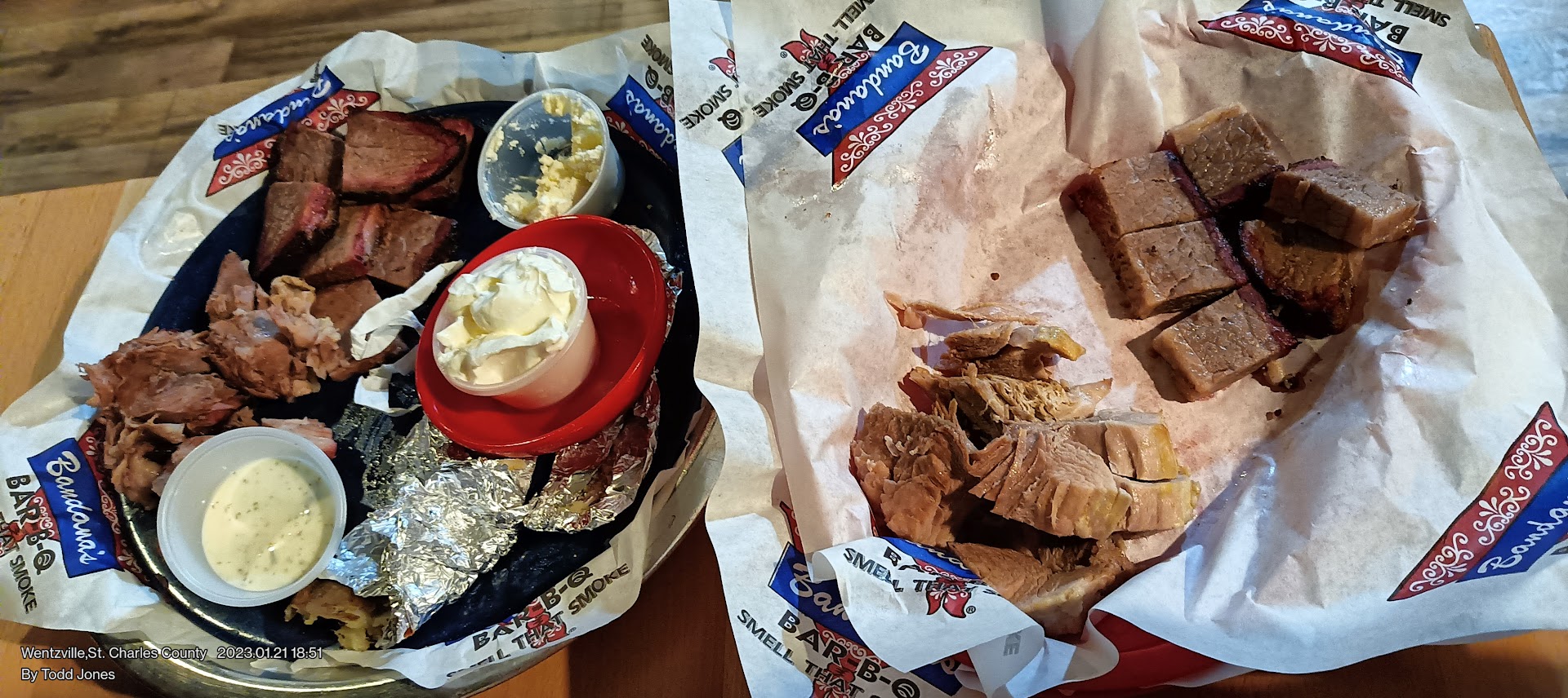 Read moreFirst of all I'm going to say that I visited this place a little more than an hour before closing time so I believe that this may have affected the food quality. But they were sold out of ribs and turkey when I arrived which was a bummer cuz that's two other things that I always order at bandanas so I ended up getting brisket which was a $2 up charge and I got chicken and sausage. I asked for pool chicken but the chicken that I got was not pulled but the server went back and got me some pulled chicken and let me keep the other piece of chicken which really didn't mean no good because the chicken was dry the brisket was so dry it was inedible and the sausage was absolutely delicious but wasn't cut like all of the other bandanas cut their sausage so so it felt kind of cheap even though it was the same bandana sausage that I love it just the cut makes a difference. I paid an upcharge for a brisket in my shoes three combo and was upset that I didn't send it back because it was absolutely horrible. But I am determined I'm going to go back to this location when it's earlier in the day to see if I get a better representation of this location and when I do I will update...