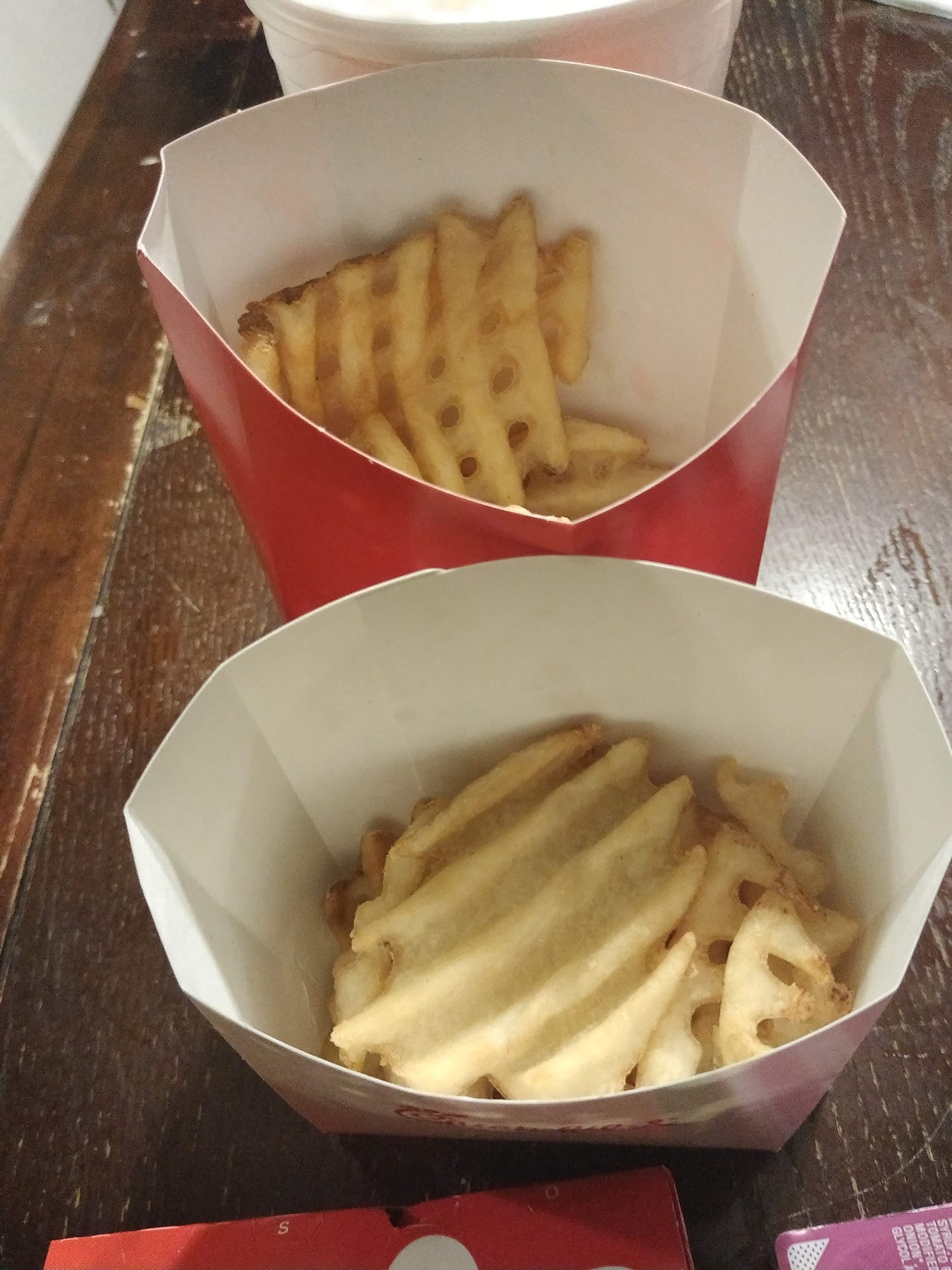Read moreAfter placing my order and telling the person taking the order I'm paying with cash I waited in line once I finally reached the window my food was given to me pretty promptly I then had to wait for the employee to get ones so he could give me my change after waiting for that I drove from the drive thru into a parking spot to eat my food. When I opened up the bag and went for my sandwich I realized it was not what I ordered, feeling slightly aggravated but not a huge deal at this point I figured I guess I had to go inside to get what I actually ordered. After waiting in line for several minutes I approached the register when it was my turn and told the employee that I had just came through the drive-thru and that I ordered a chicken sandwich with lettuce and cheese and had received a sandwich with just chicken and pickles. The employee then tells her manager of the situation immediately the manager ask me if I have a receipt. Almost implicating that it was my fault. At this point I was little agitated.. I asked the manager if she would replace the fries since I already had to wait for change and also for them to remake the sandwich. I had ordered a drink to which was sitting out in my car getting watered down but I am somewhat understanding. I assumed they would at least offer to remake the fries for the inconvenience, they did not ask. I had to ask them if they could give me new Fry's. The manager's response was that I should pretty much deal with it because it was on the order. The customer shouldn't have to explain how customer service Works to a manager. I have had similar occurrences happen at other places of business and they usually try and do something to make it right. I had to explain to her that I had been waiting and feel they should replace the Fry's. The manager did replace the fries and apologized but I don't really feel that it was genuine. Come on Chick-fil-A get your...