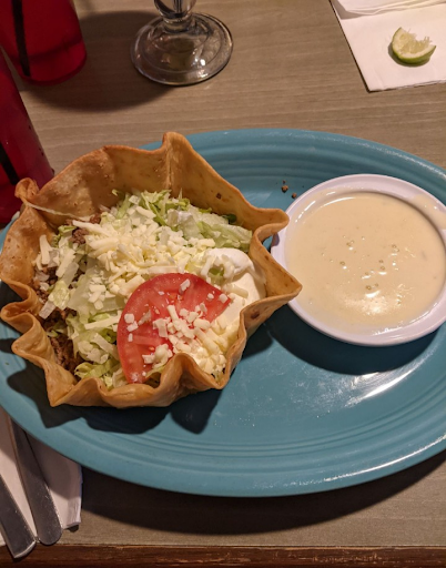 Read moreNice looking restaurant with indoor, outdoor and bar seating. The restaurant and bathrooms were both tidy and clean. We were greeted and seated quickly. The server was quick to bring out our salsa, chips and drinks. We ordered off of the lunch menu which had quite a few options but the prices seemed a little high for the amount of food. Our meals were very lackluster, as other reviewers have said it was just a "meh" meal. My enchilada was literally just shredded unseasoned chicken in a tortilla. Sauce on top with a little cheese. Beans and rice on the side. The other meal we ordered was the shrimp tacos. Literally shrimp in a tortilla with lettuce. No garnish (lime, cilantro or anything) or sauces. We asked for hot sauce (chalula or Tabasco) and we're brought out 2 different salsas in dishes. We saw later that we had been charged for them. When we asked about it the server said "it says on the menu that it's extra". Instead of informing us when we asked for it and just bringing us the condiments we asked for. I won't be back and don't really recommend. We did not try drinks so I can't rate based on that. The stars I gave were for the cleanliness and the outdoor...